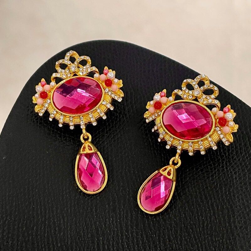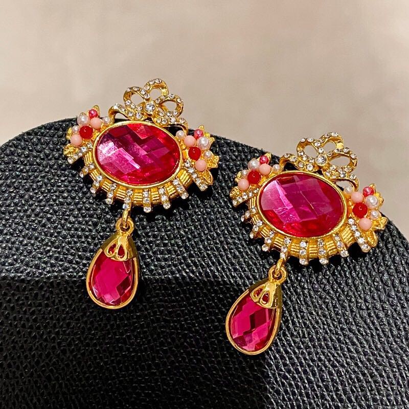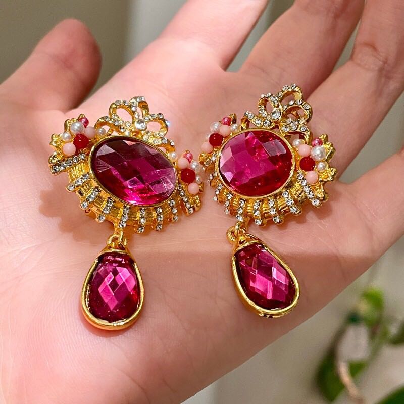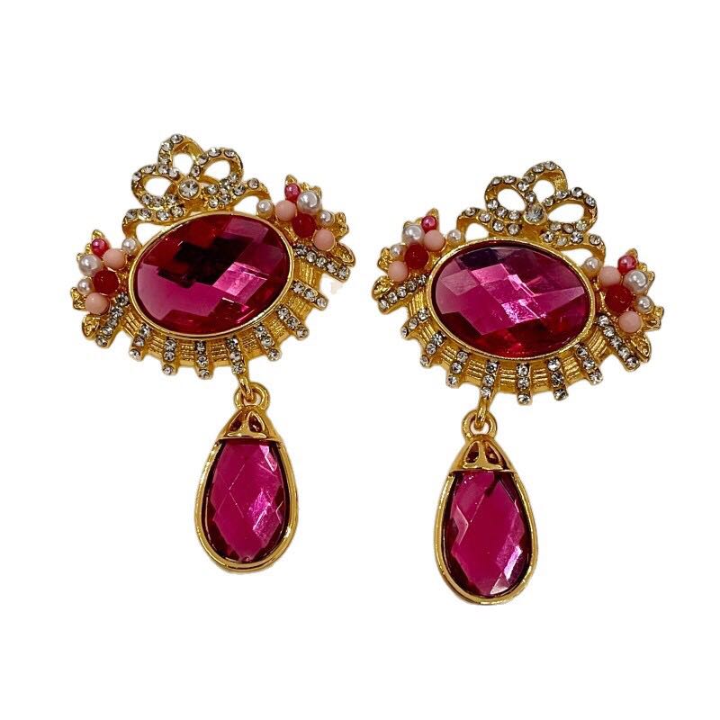 retro rose pink rhinestone earrings fashion high-grade temperament white water drop earrings mild luxury retro ear studs 中文版