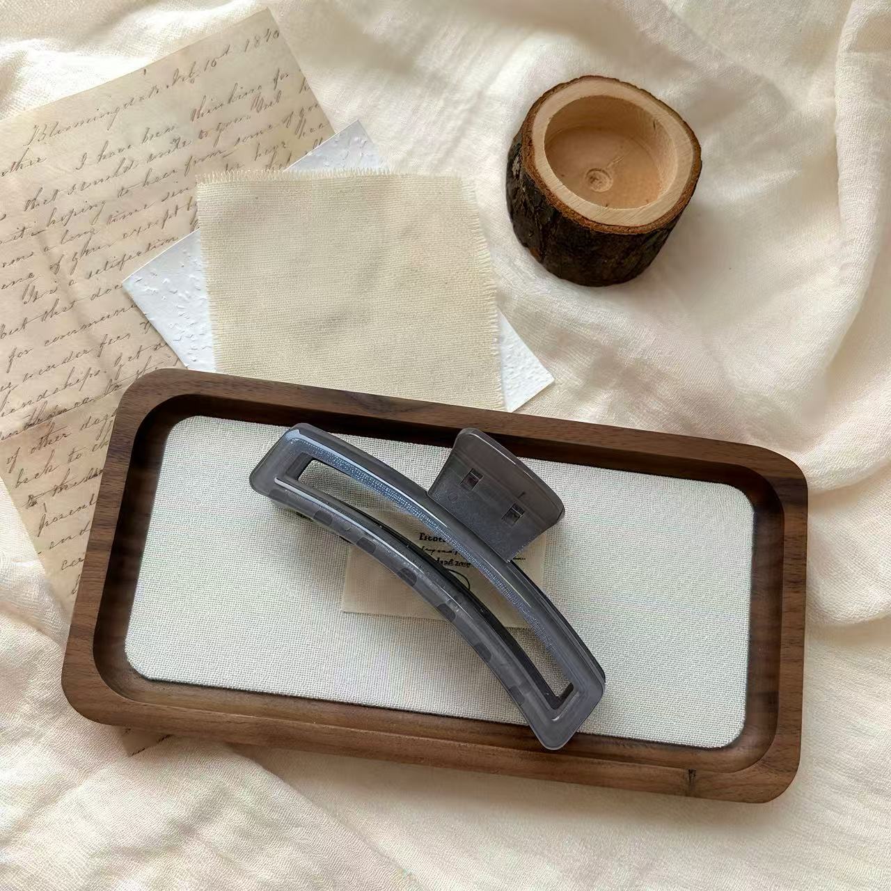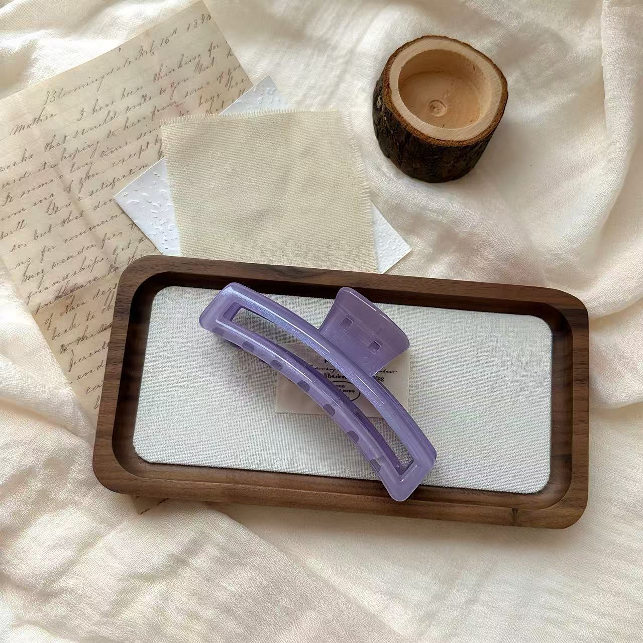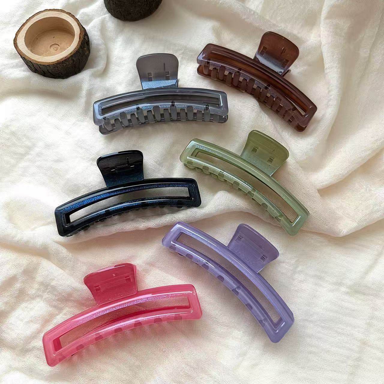 These hair clips are made of PS material, with a transparent and delicate texture, moderate hardness, durability, and resistance to deformation. There are a variety of colors to choose from (grey, brown, dark blue, green, purple, pink, etc.). The curved design fits the head shape well, securely holding the hair in place, making it suitable for everyday hairstyles or creating hairstyles. It is simple and practical, suitable for hair accessory wholesale or daily wear.