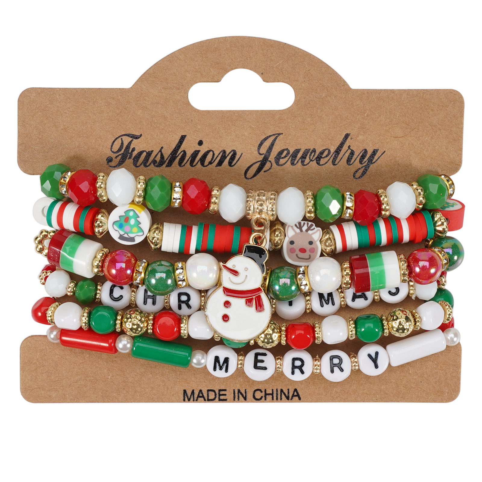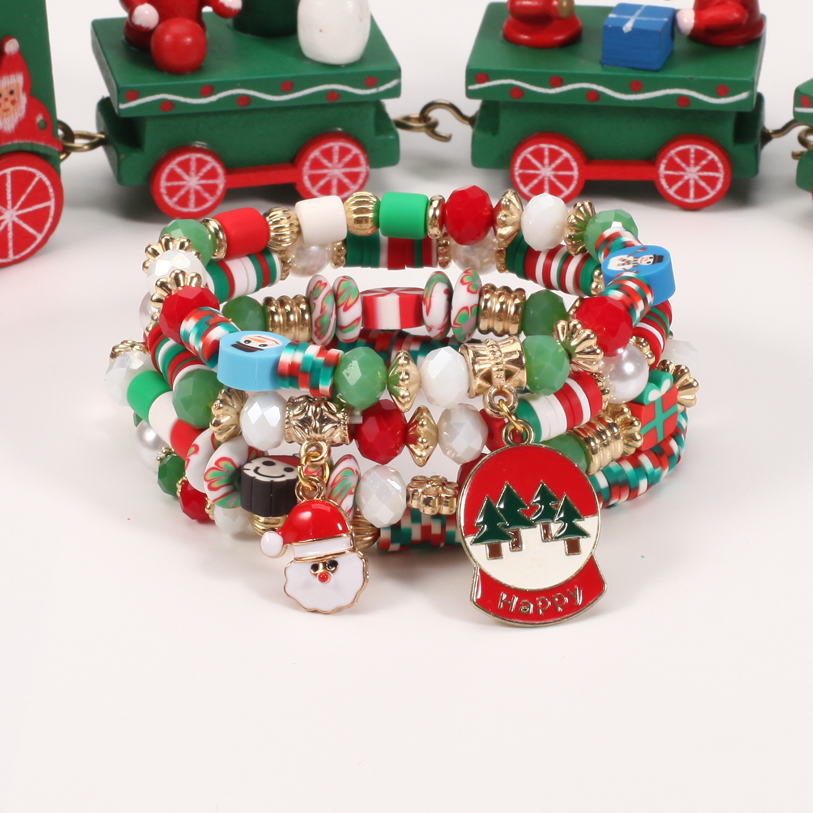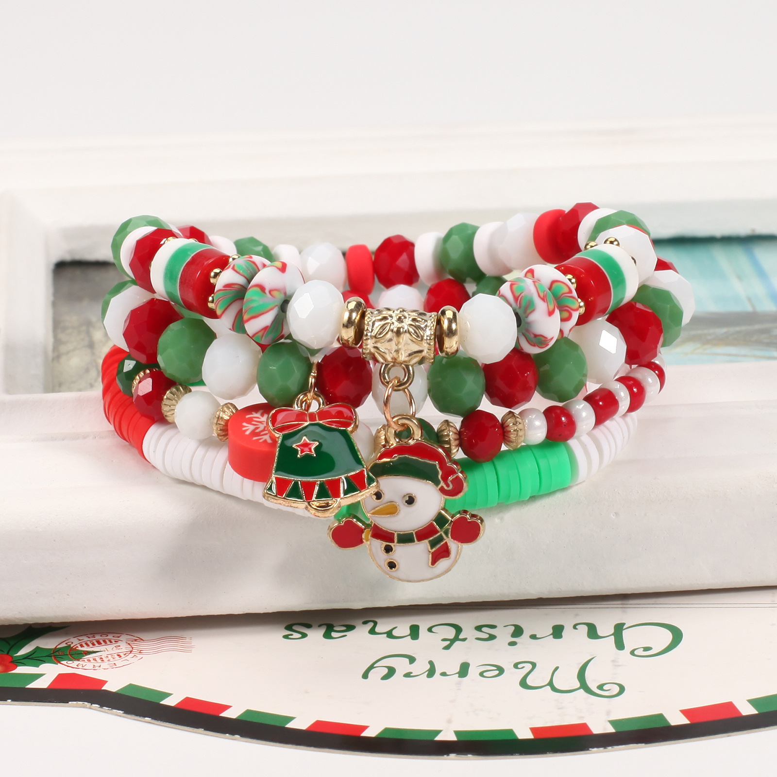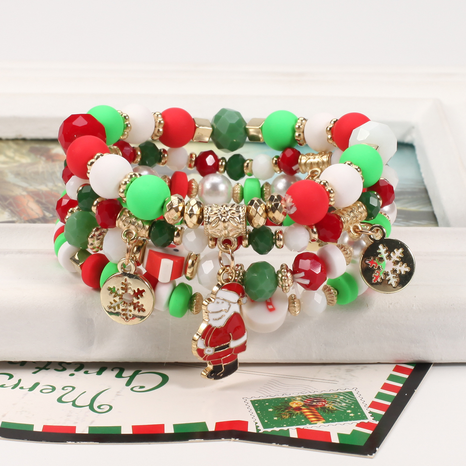 Christmas Bracelet, Cross-border Beading Bracelet, Snowman, Christmas Tree, Santa, Reindeer Antlers, Gift Pendant Bracelet Wholesaling