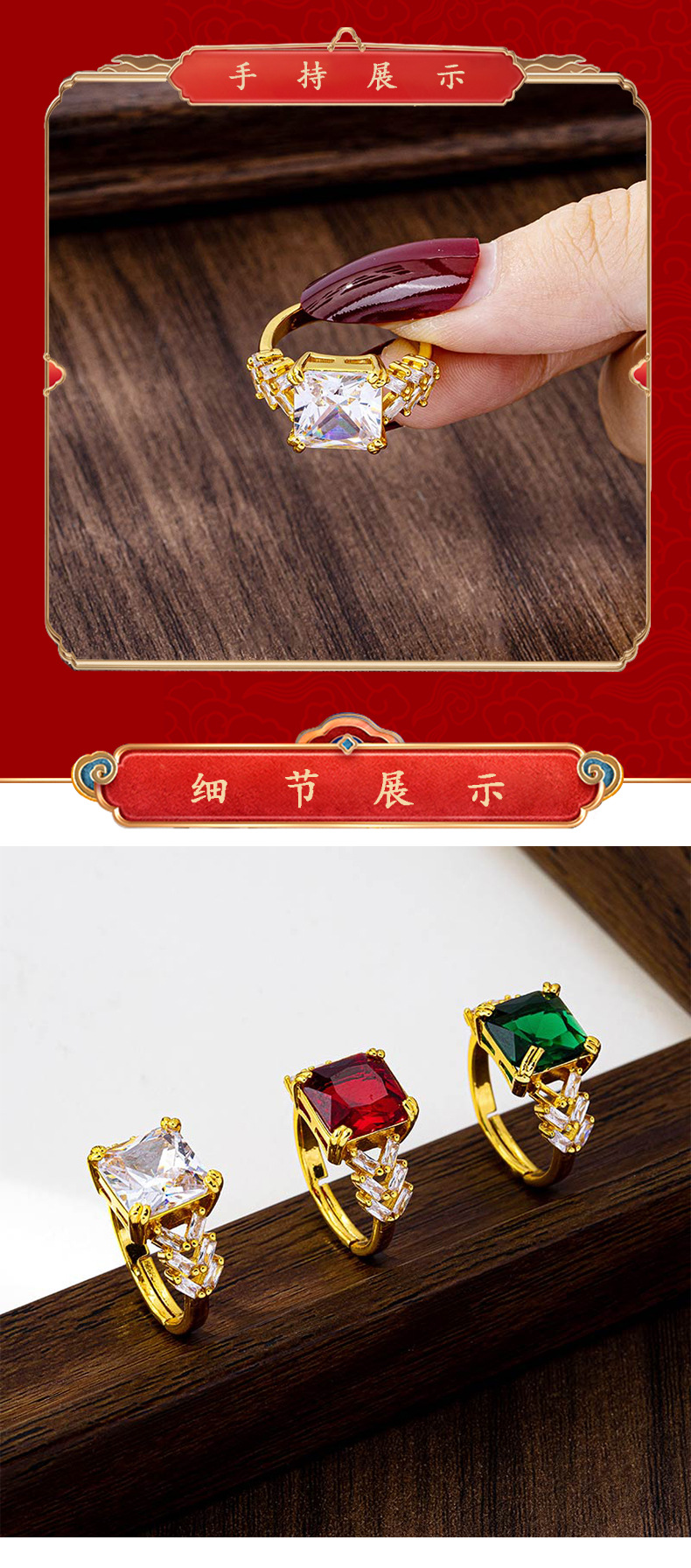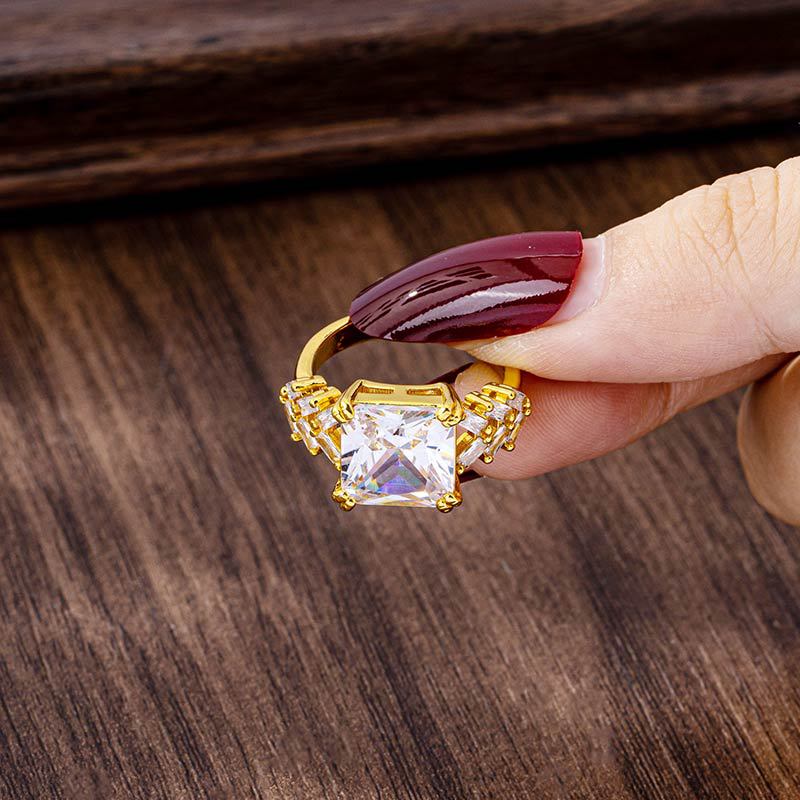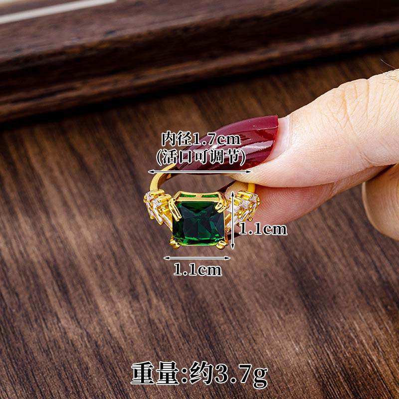 cross-border design sense geometric open index finger ring female vietnam placer gold inlaid zircon ring simple style light luxury ornament 中文版