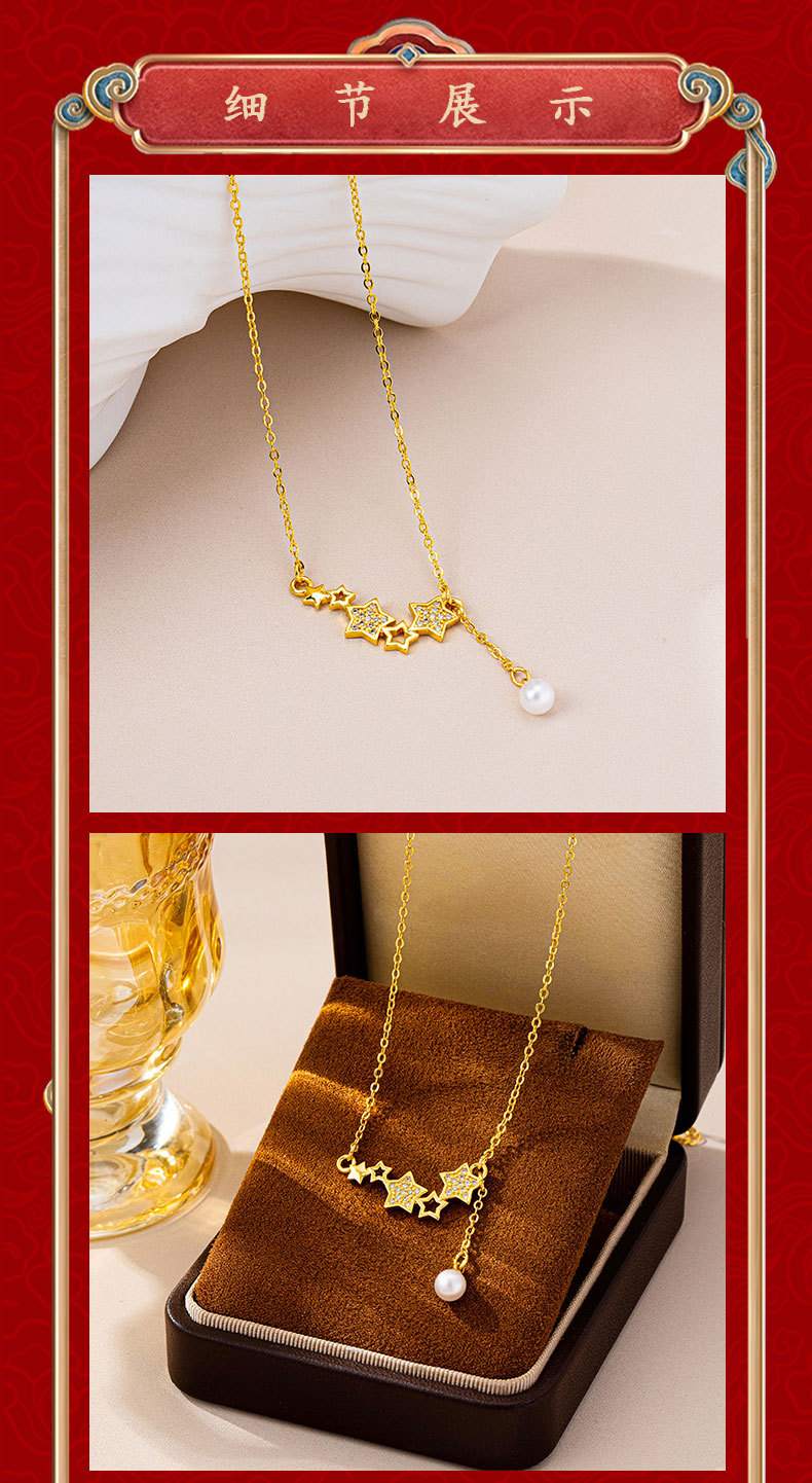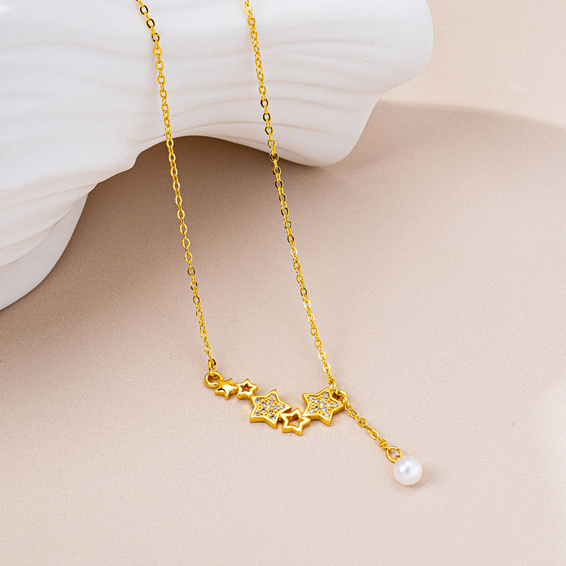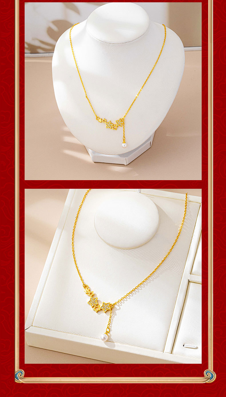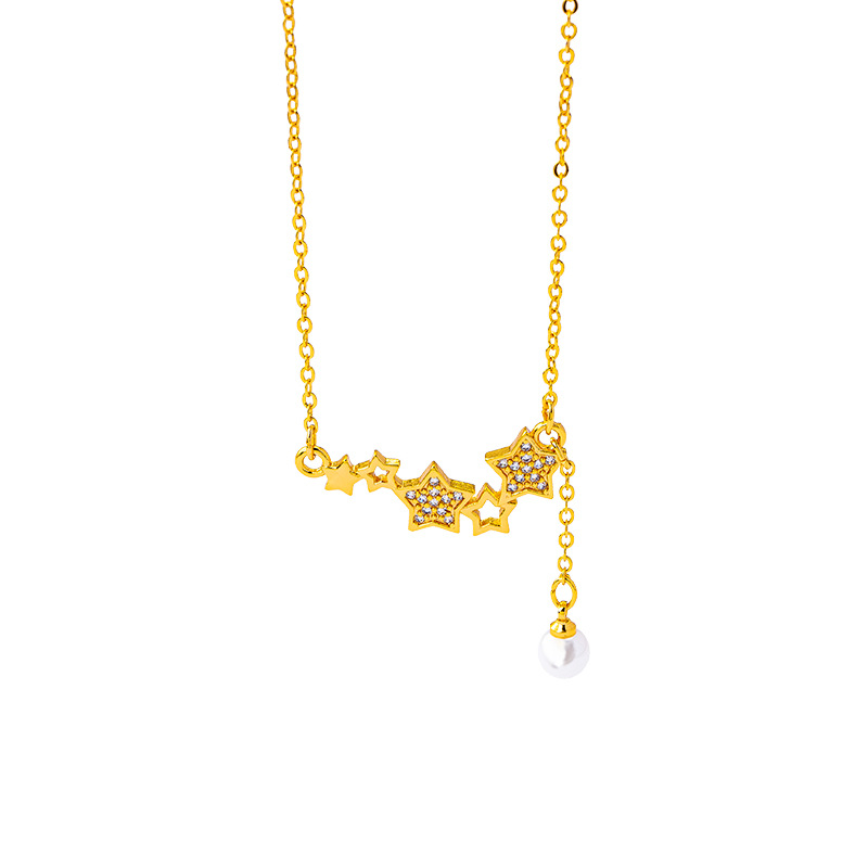 vietnam placer gold light luxury diamond xingx necklace women's luxury design imitation pearl tassel clavicle chain trend jewelry 中文版
