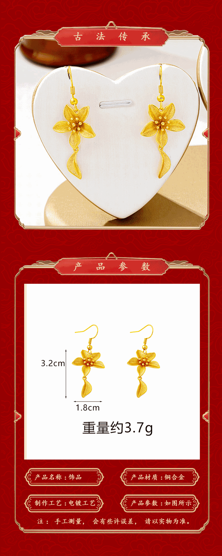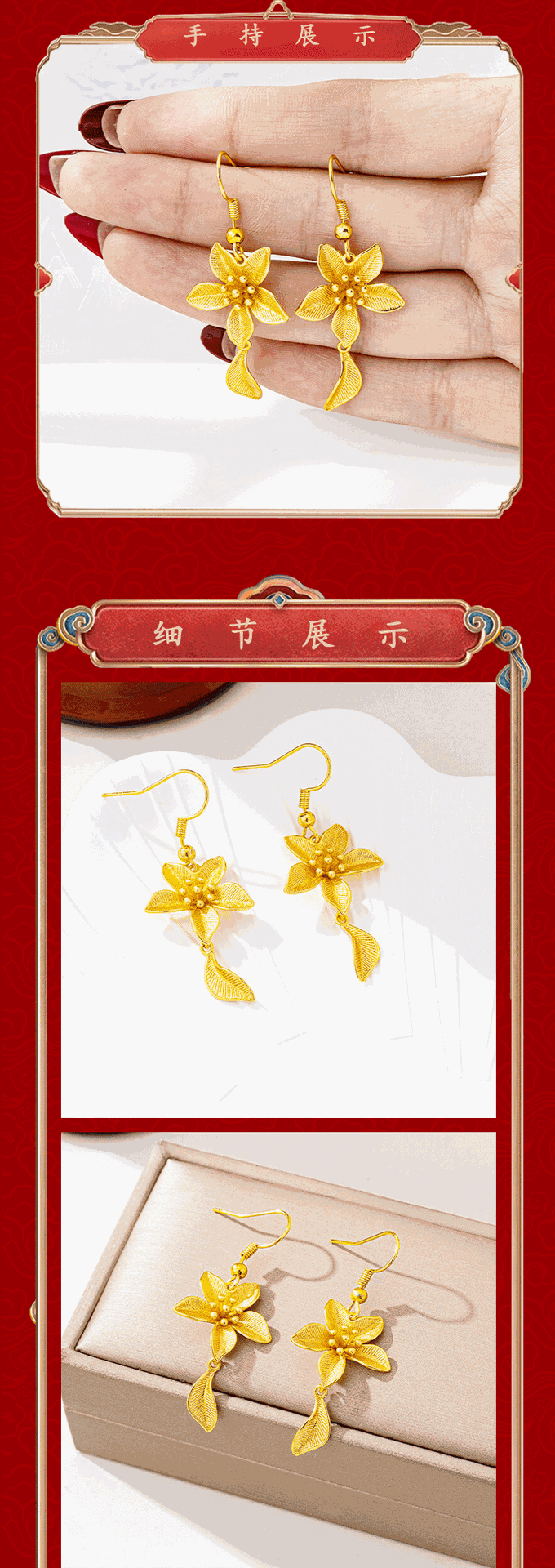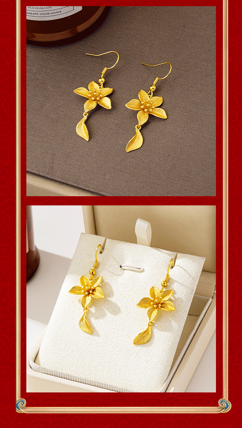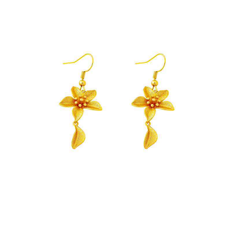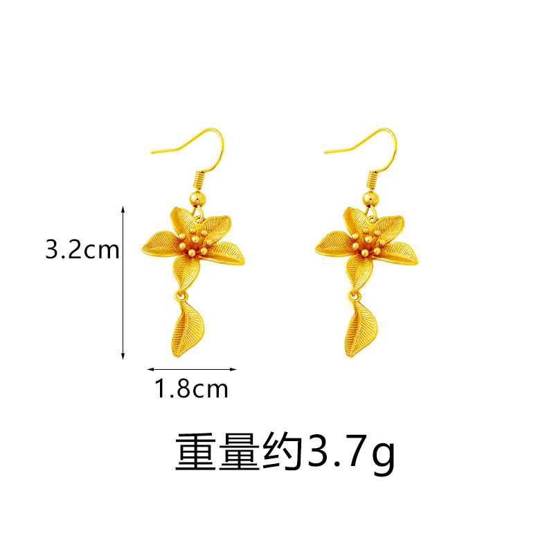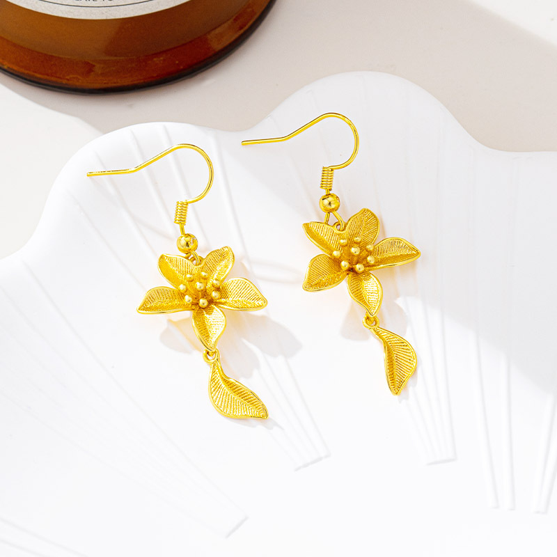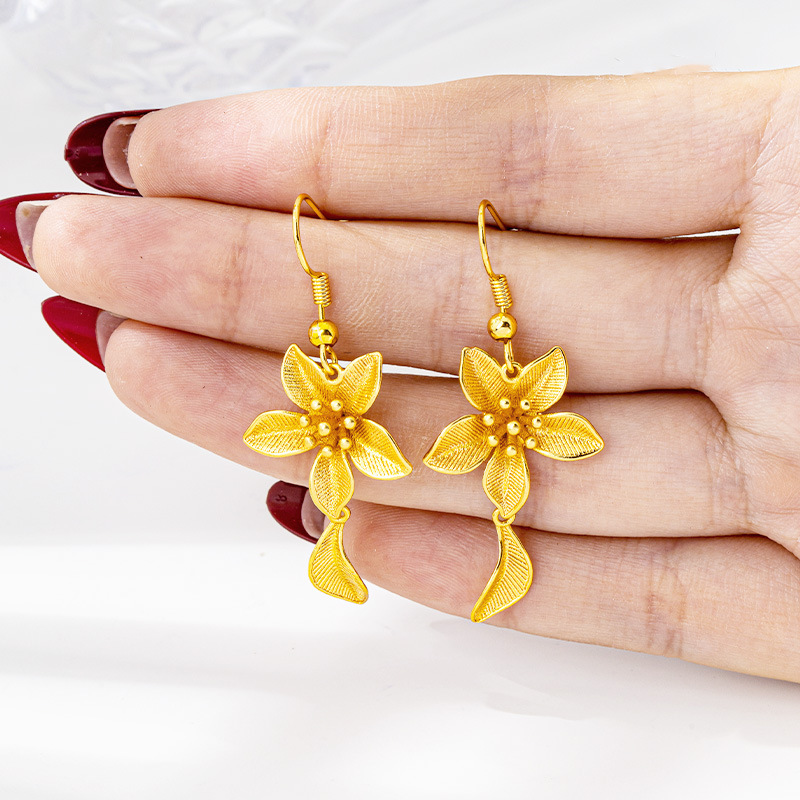 new vietnam placer gold flowers ear hook luxury ethnic style petal fringed earrings female temperament no color fading ornament 中文版