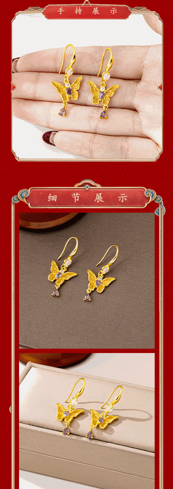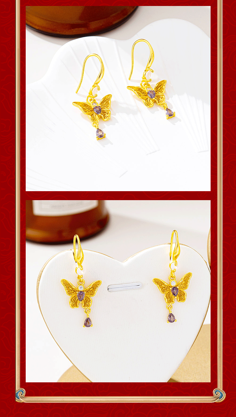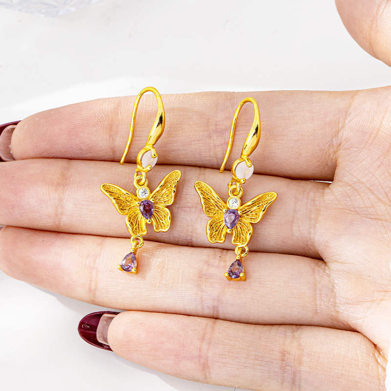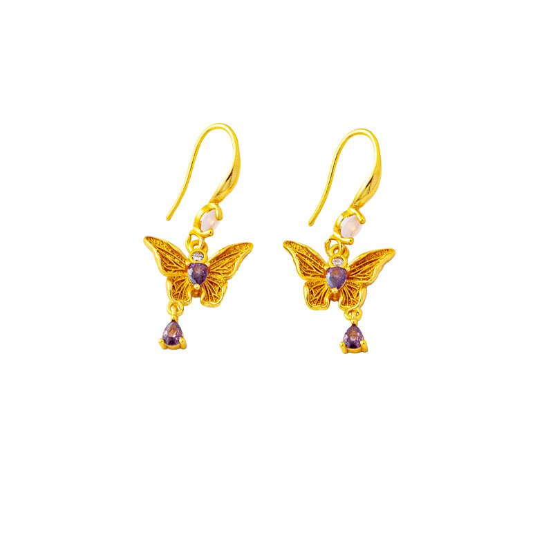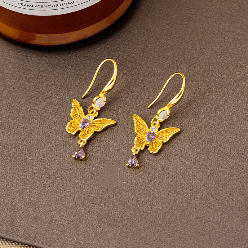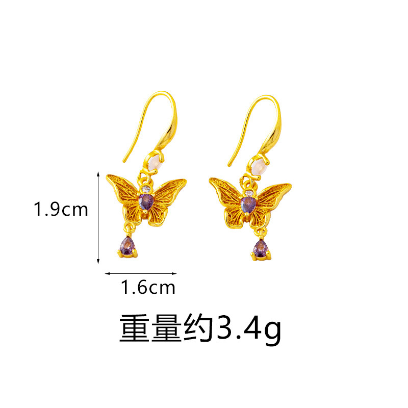 new chinese style light luxury purple diamond butterfly ear hook female ethnic style tassel water drop earrings design sense ornament wholesale 中文版