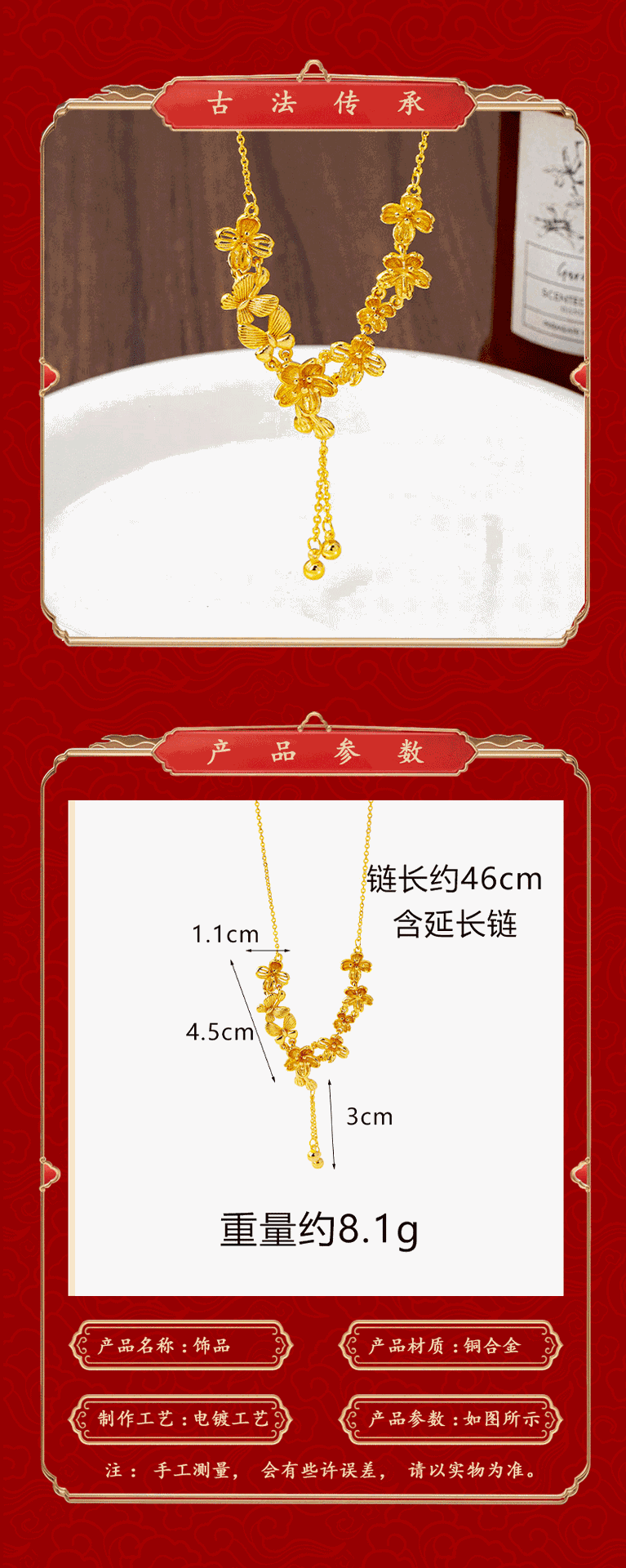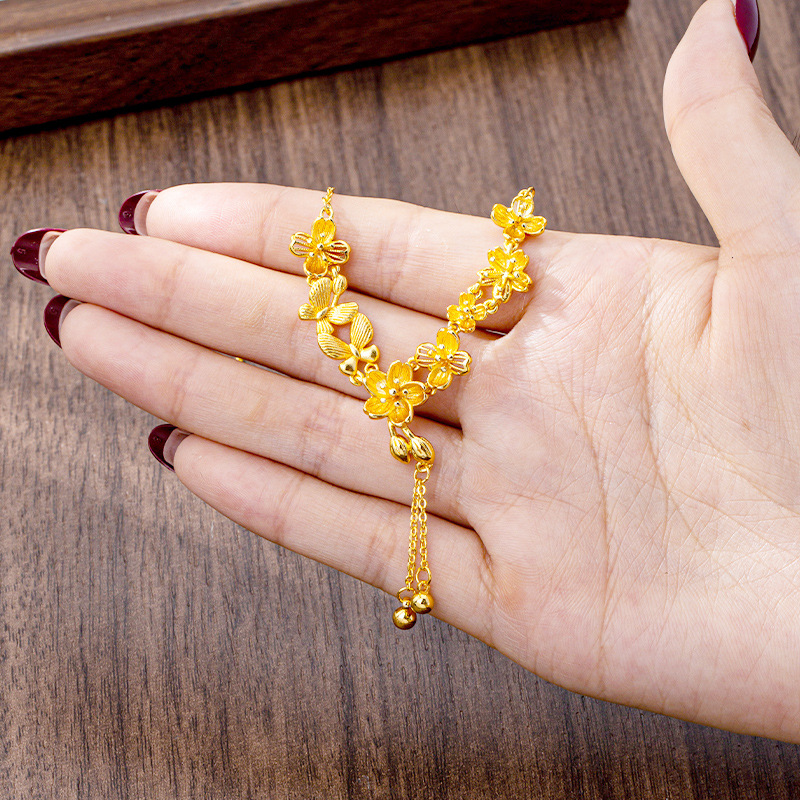 vietnam alluvial gold necklace trendy design flower butterfly tassel clavicle chain female light luxury no color fading jewelry 中文版