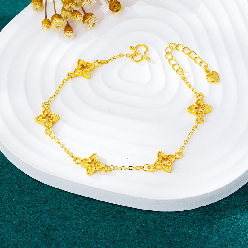 vietnam placer gold hollow four eight-pointed stars bracelet female affordable luxury style luxury flower bracelet female trend high sense ornament 中文版