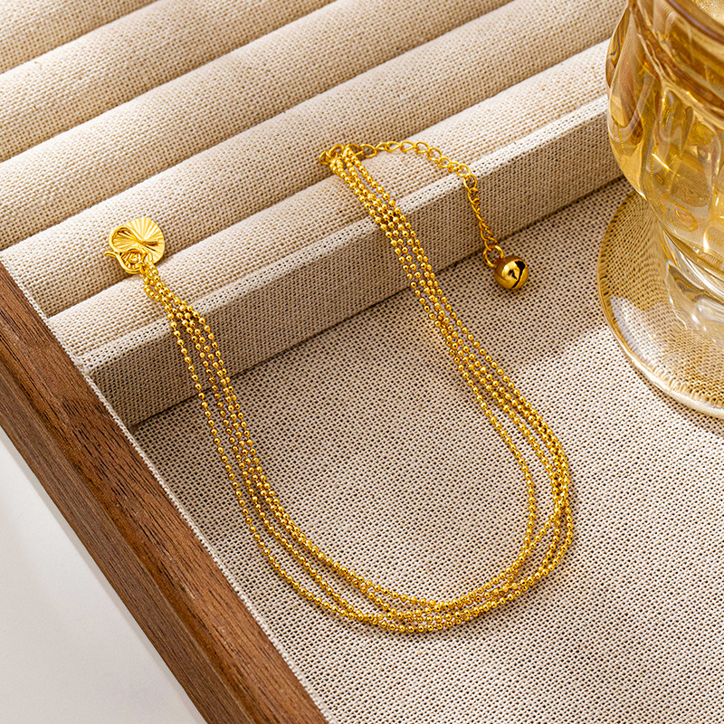 luxury design sense small beads anklet female vietnam placer gold affordable luxury style four-layer twin foot ornaments no color fading ornament 中文版