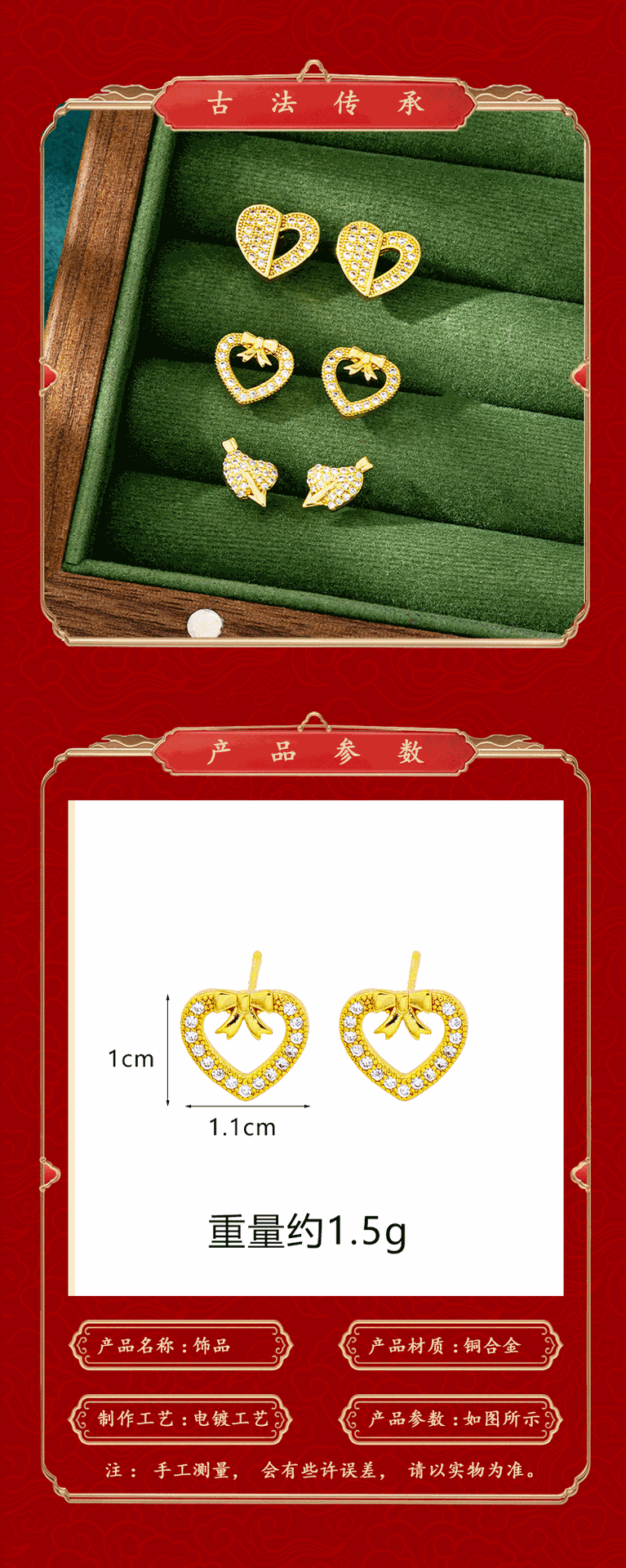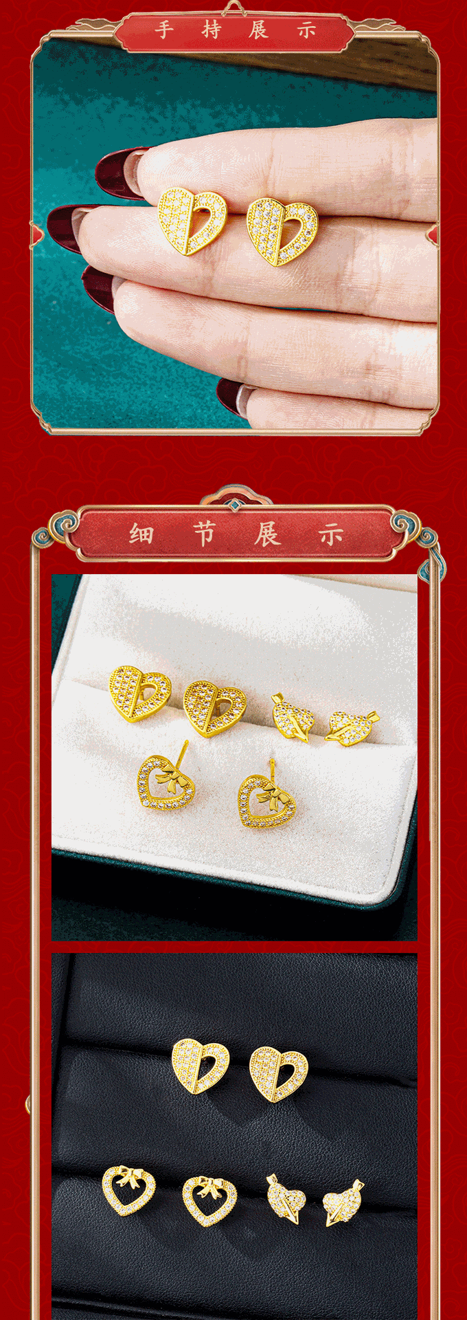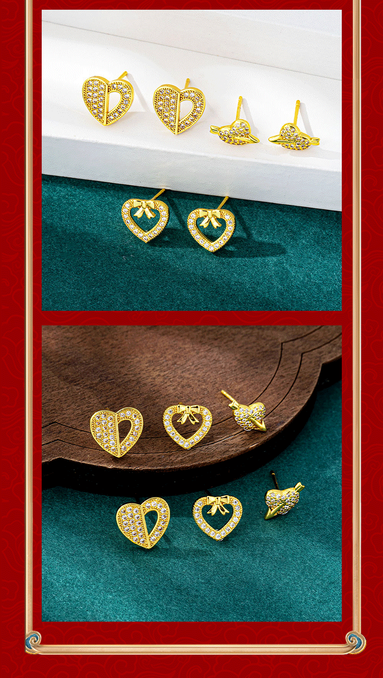 e3075 love heart stud earrings model 1