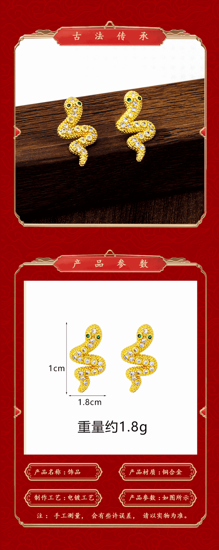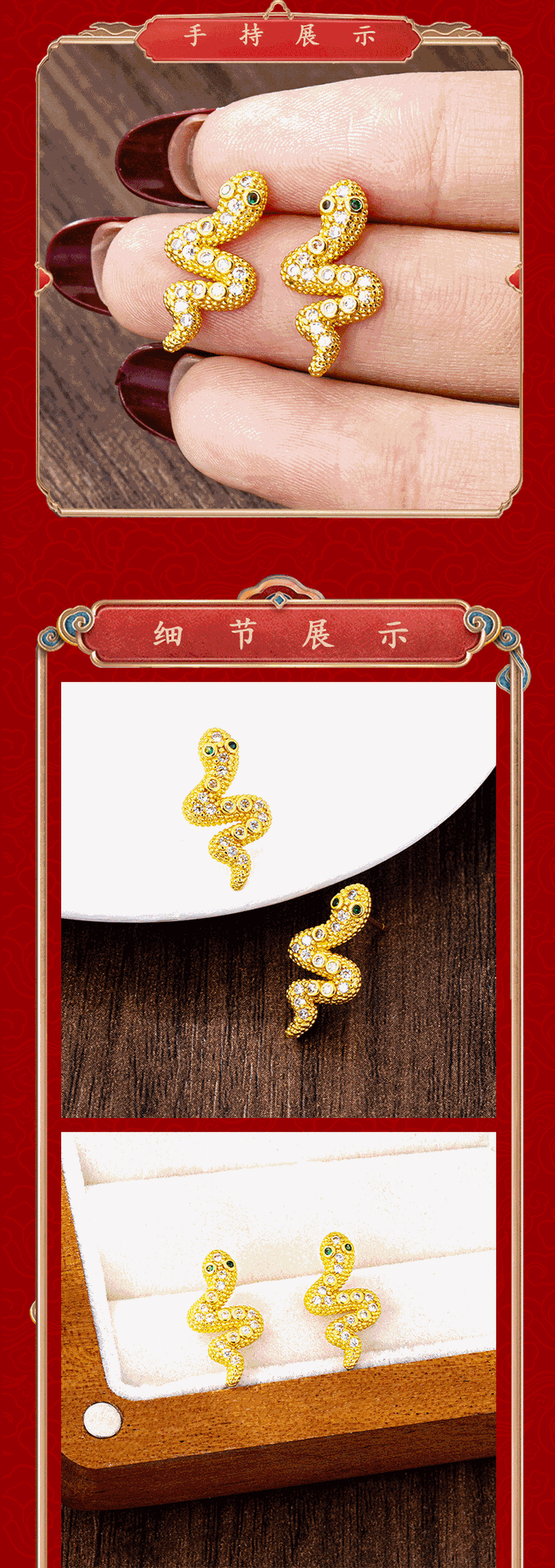 e3052 simulated snakes stud earrings