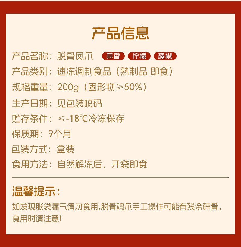 garlic flavor deboned chicken feet 200g