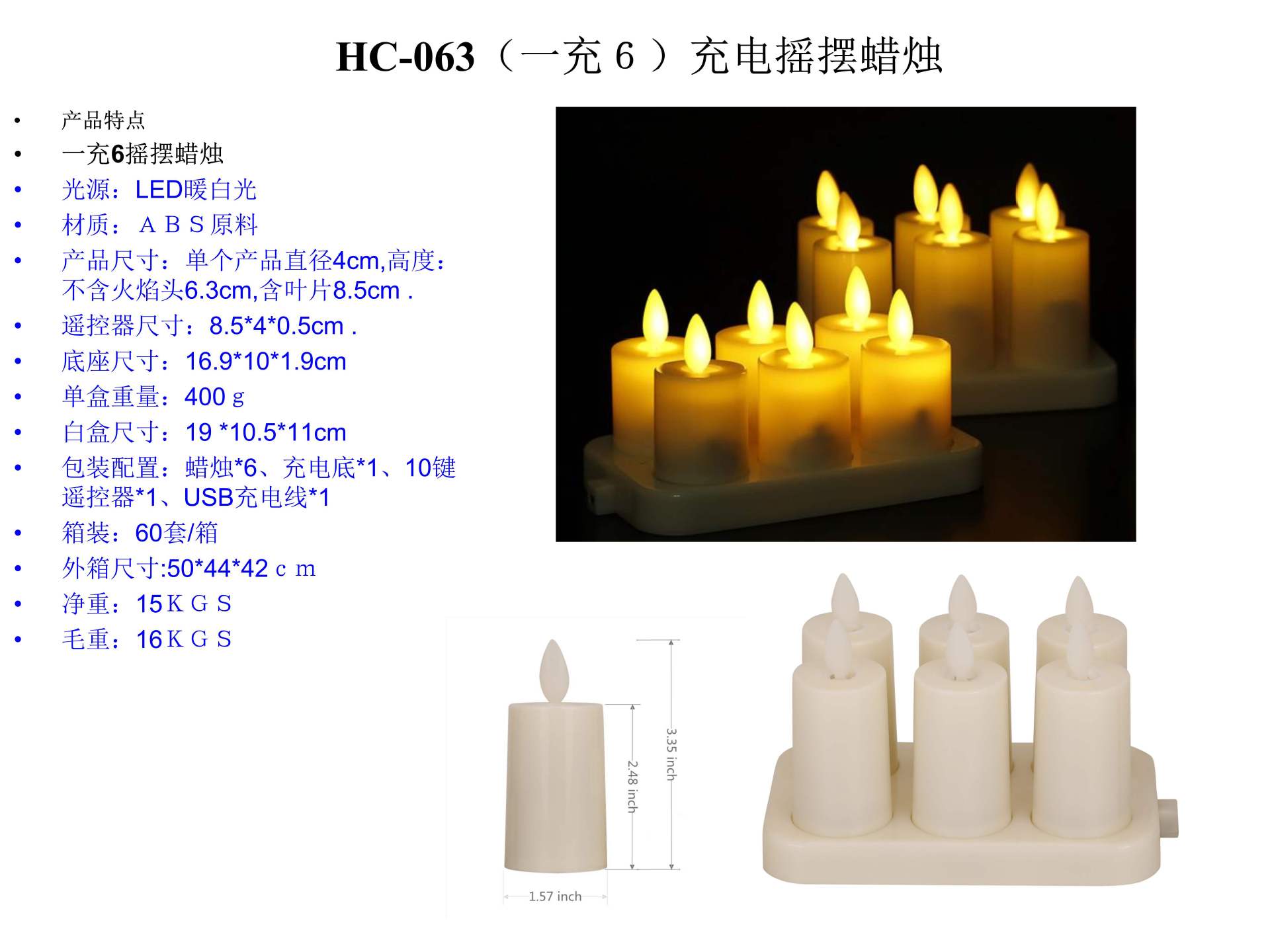 [remote control rechargeable candle large size] swing head single (line-no remote control)