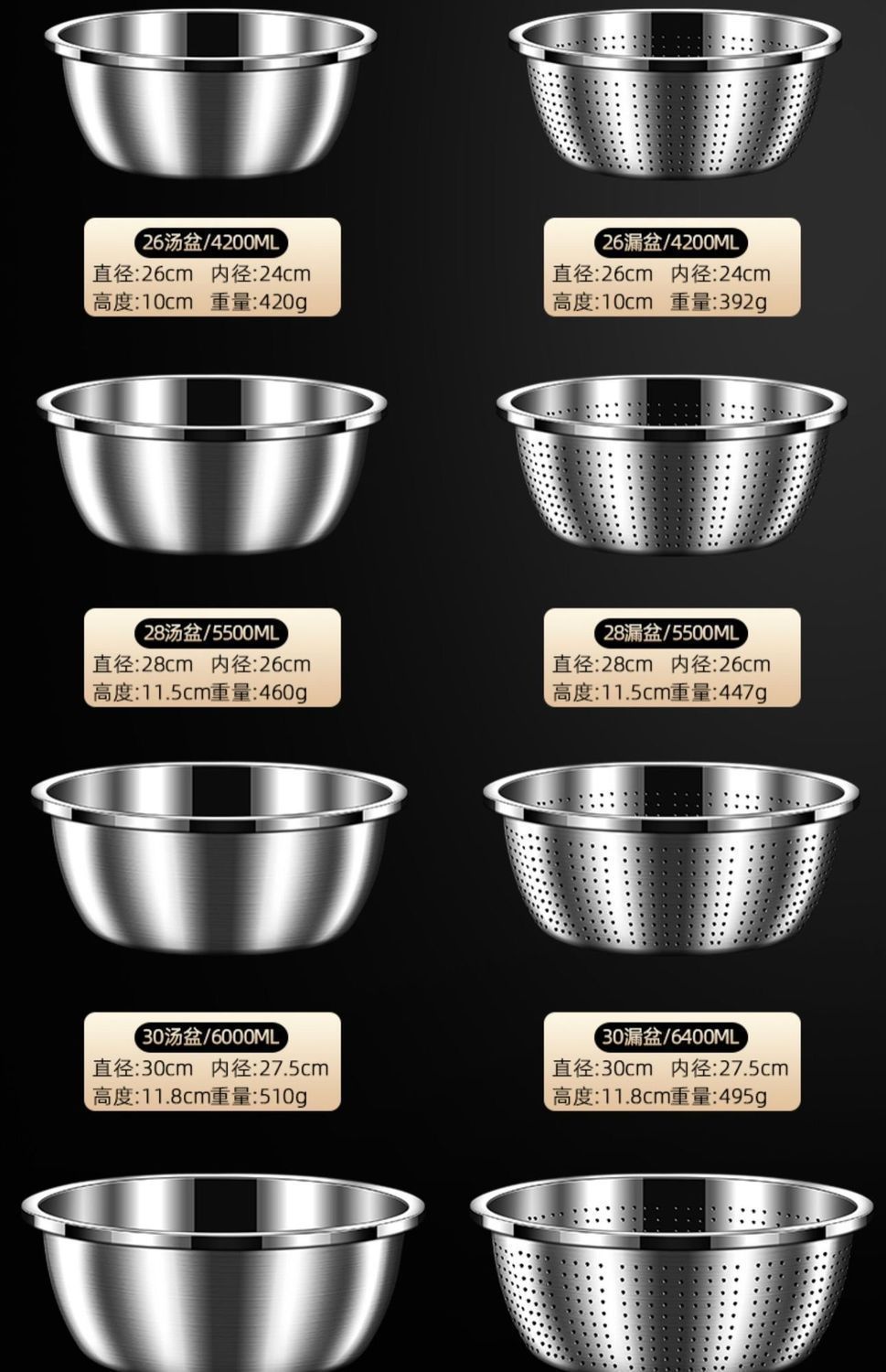 316 grade stainless steel solid basin (strip printing)-[26cm] extra thick deepening ☆