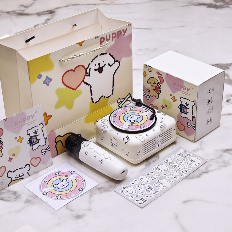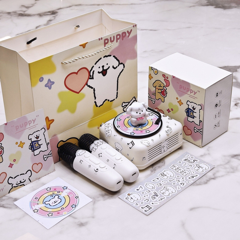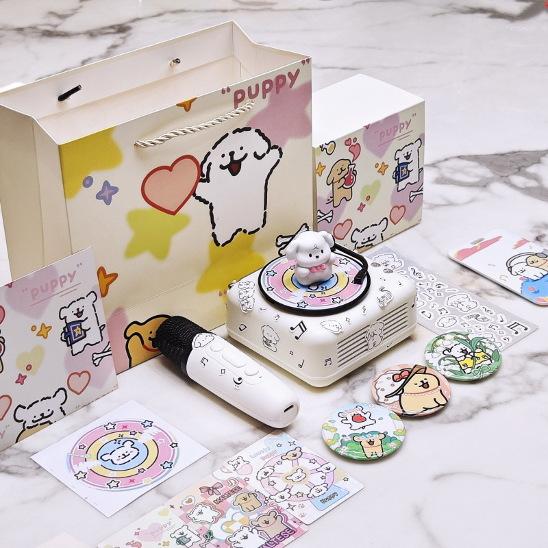 luxury model with a microphone) cute puppy stereo + stickers * 2 + gift bag + peripheral