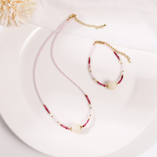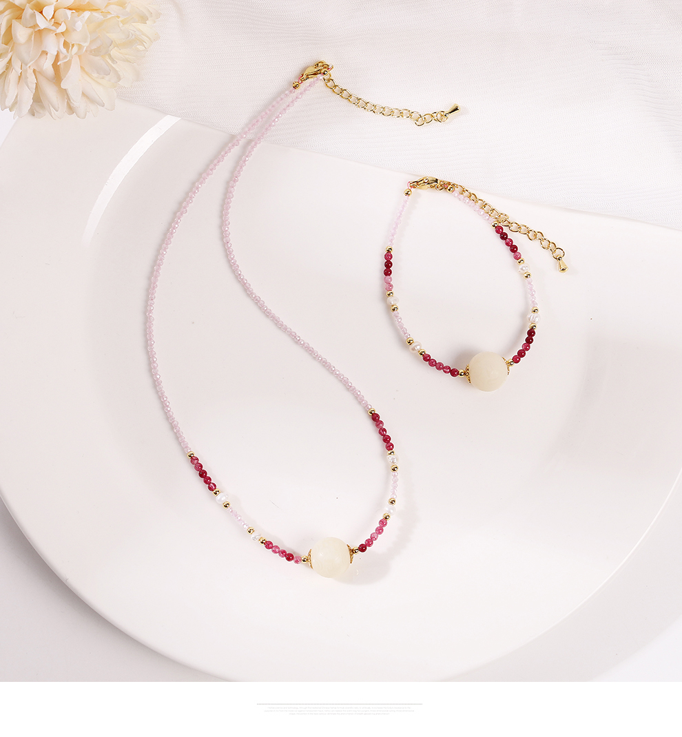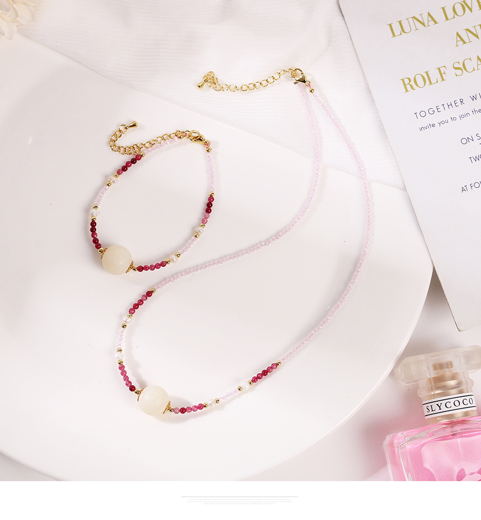 2025 dopamine color beaded necklace for women summer special-interest design clavicle chain cold style pearl necklace bracelet 中文版