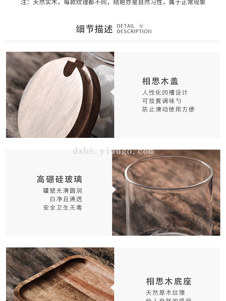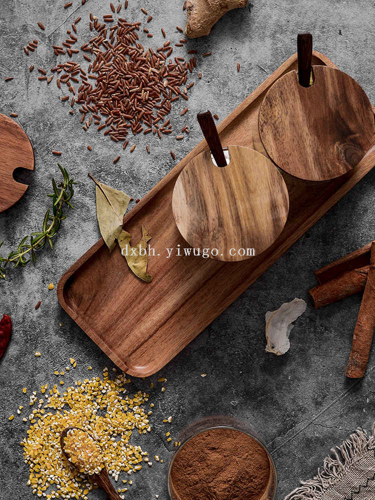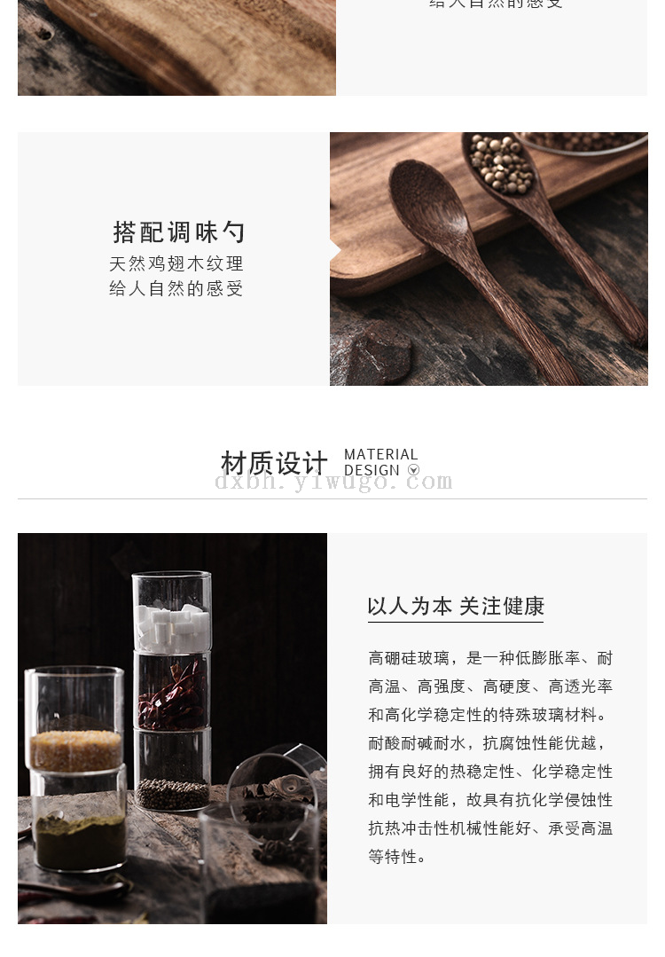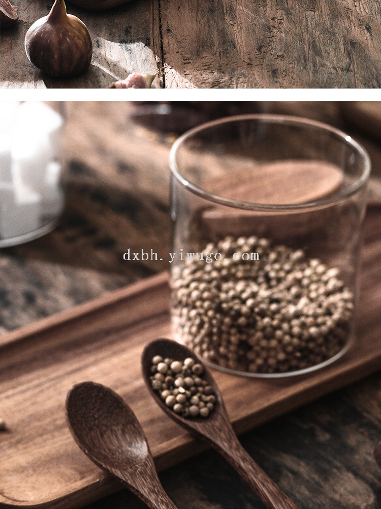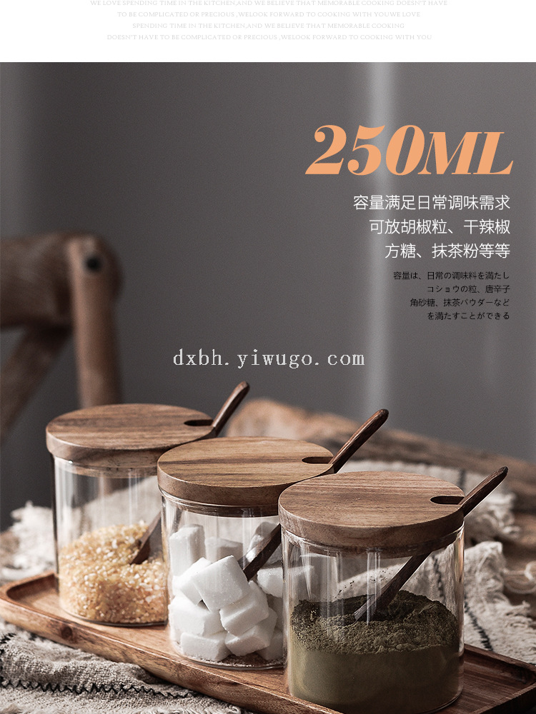 glass seasoning jar three-piece set creative kitchen utensils salt jar sucrier wooden condiment dispenser set
