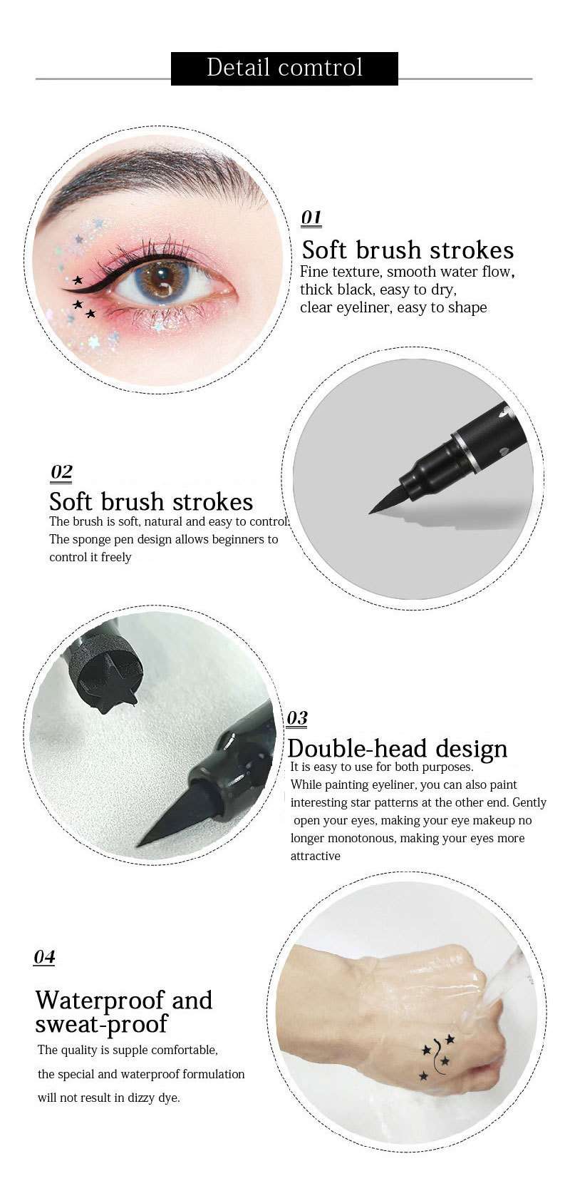 cross-border hot double-headed xingx seal eyeliner waterproof novice love plum blossom embellished eye corner eye tail eyeliner 中文版