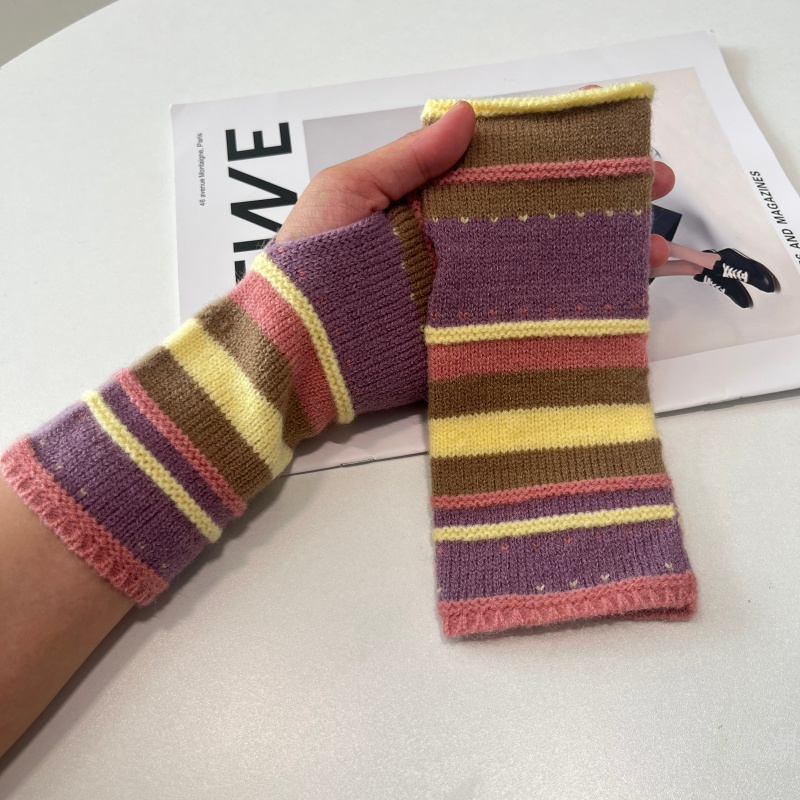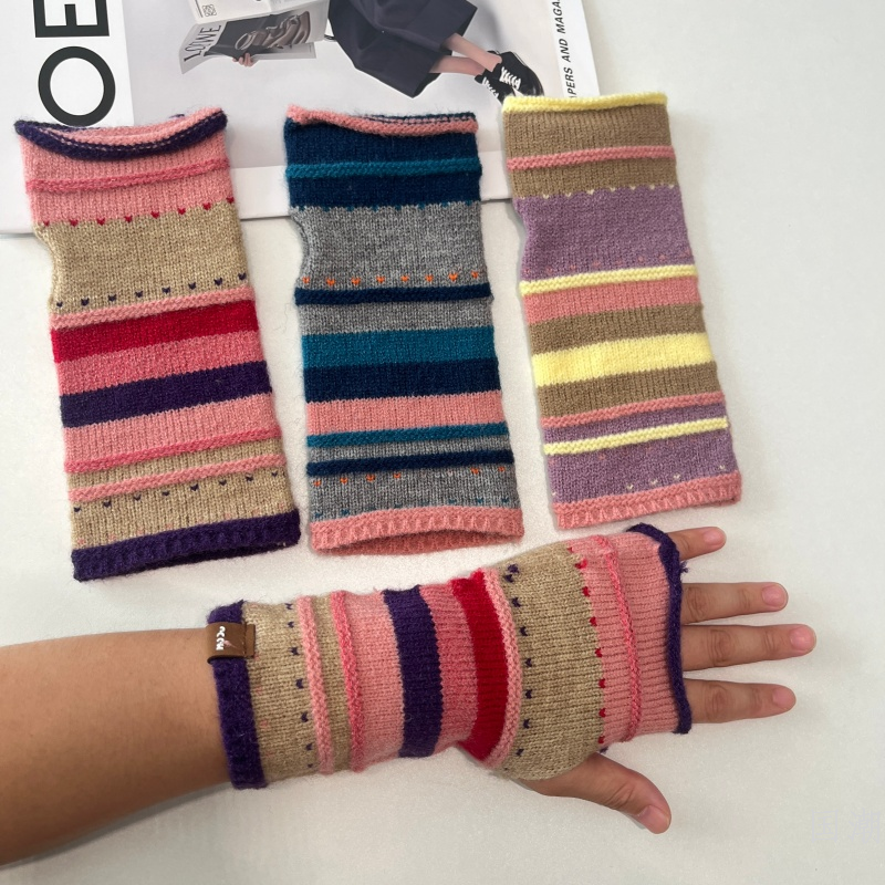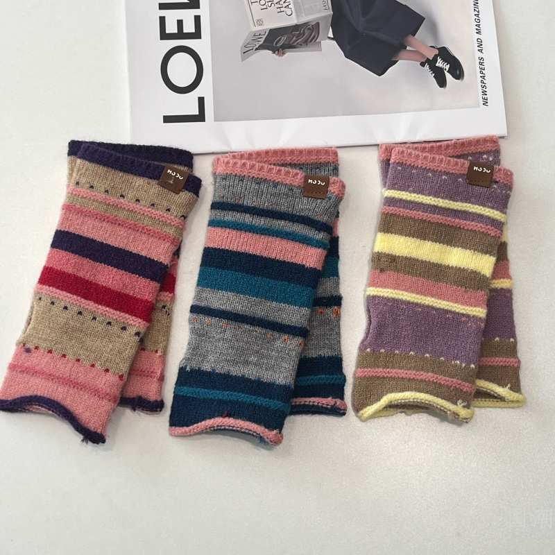 autumn and winter thickened warm half finger knitted gloves female students writing open finger touch screen wristband color wool oversleeve 中文版