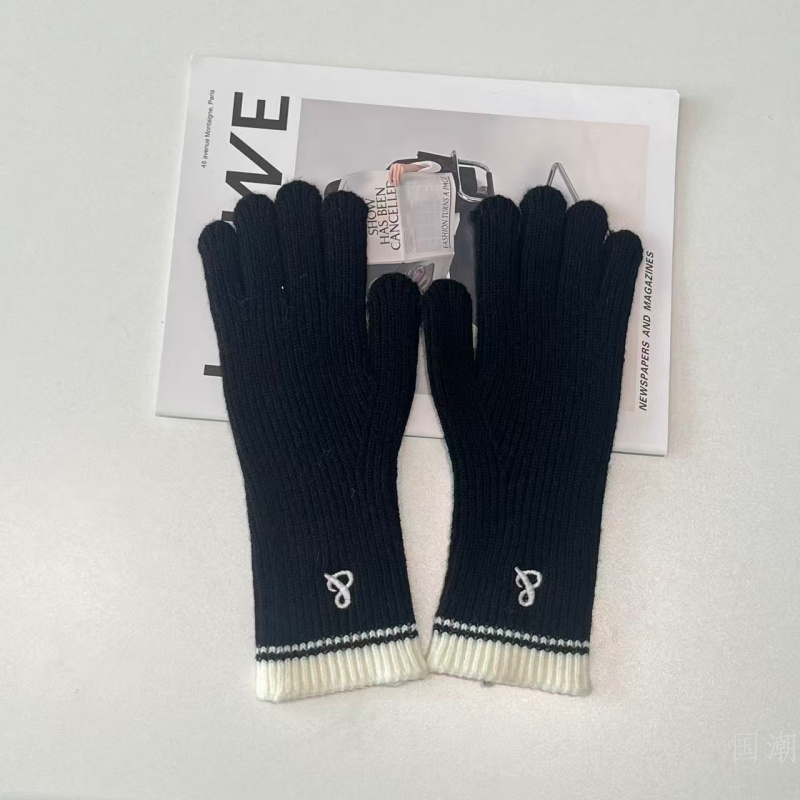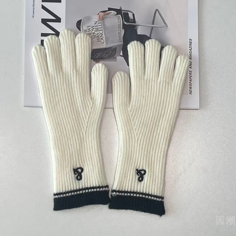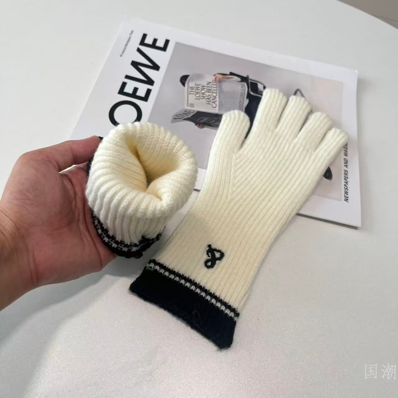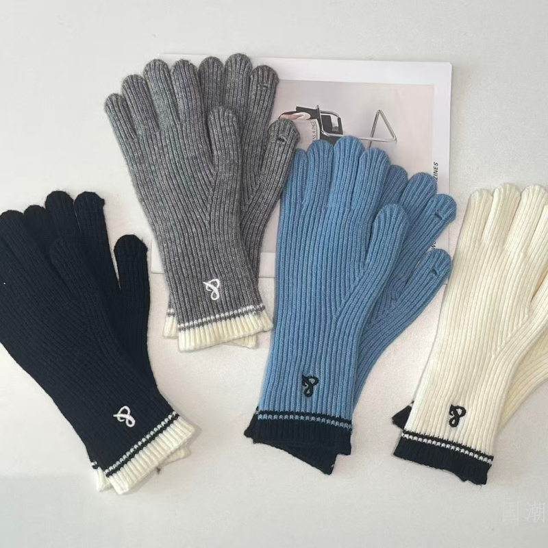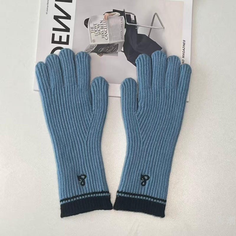 2025 new long knitting wool gloves women's autumn and winter royal blue five-finger touch screen knitted warm gloves 中文版