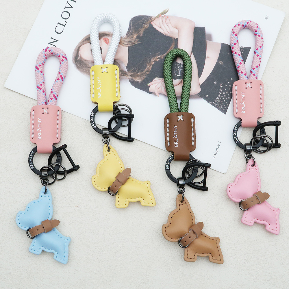 white leather dark blue rope + yellow french dog fighting free two small circle +8-word buckle