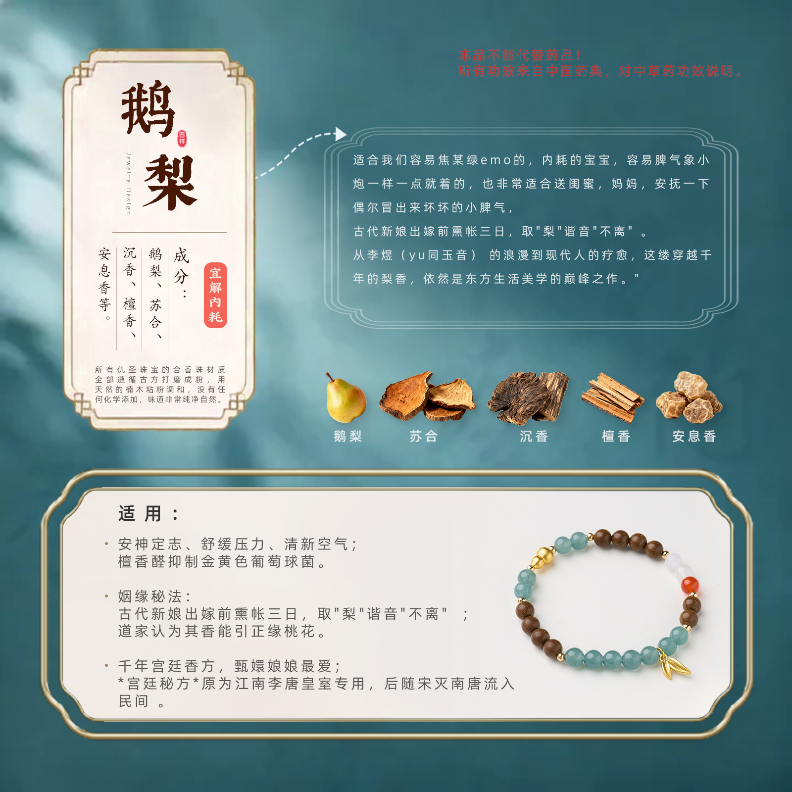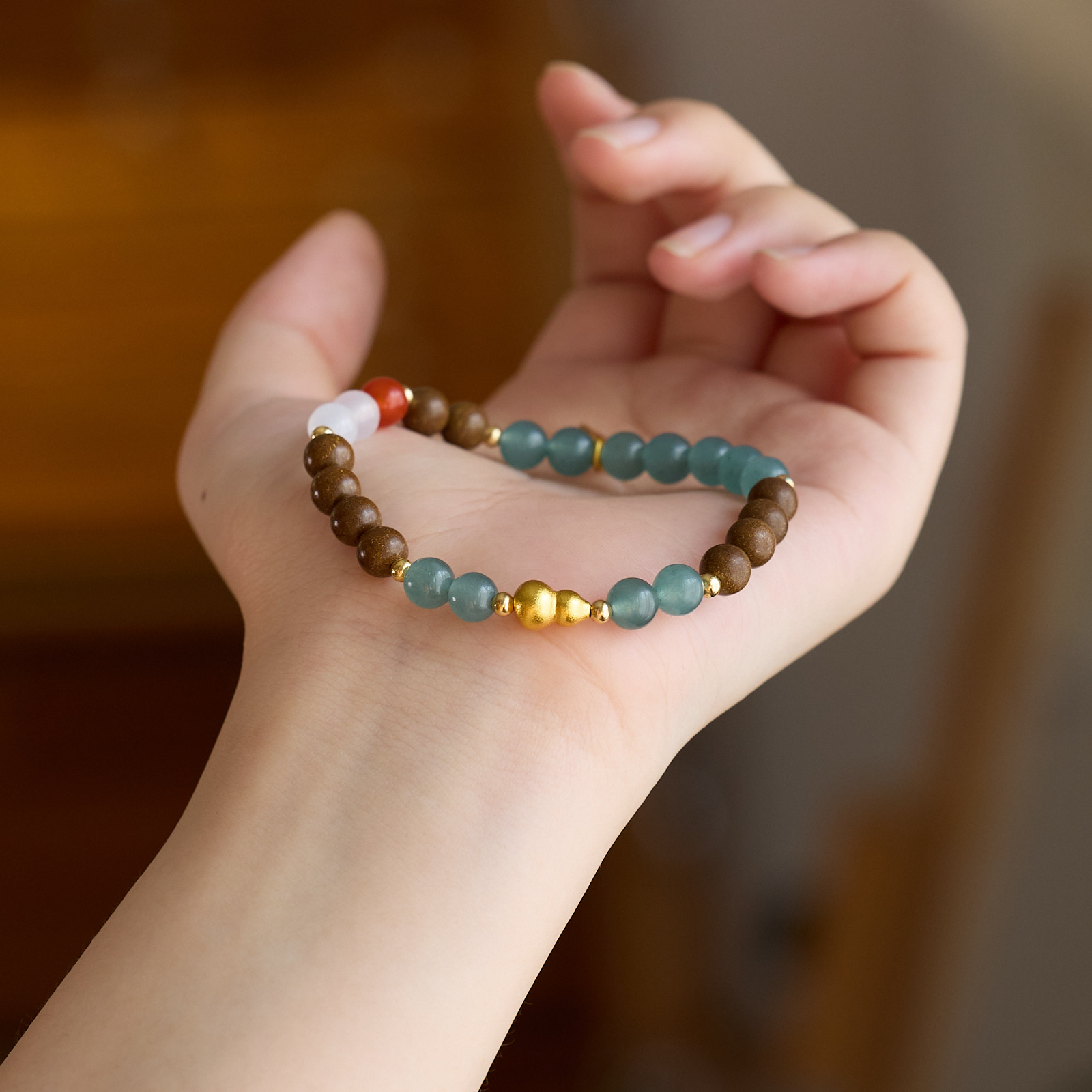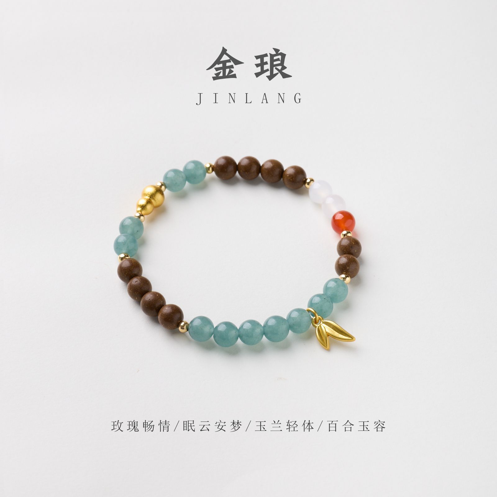 | Main Materials | Goose pear blend incense beads, blue chalcedony, white agate, red agate, copper-plated gold accessories