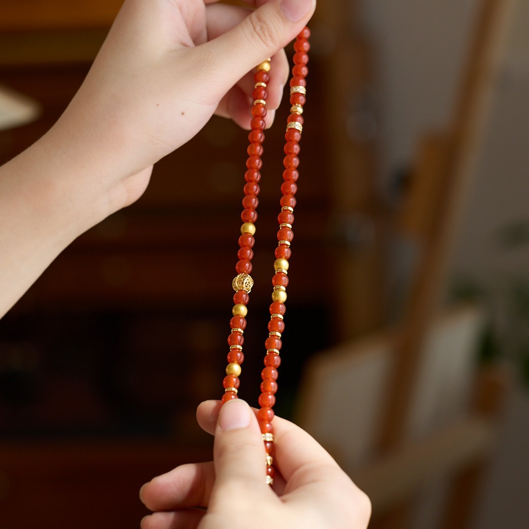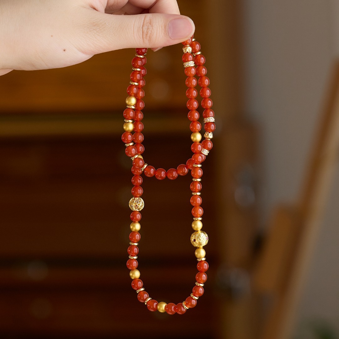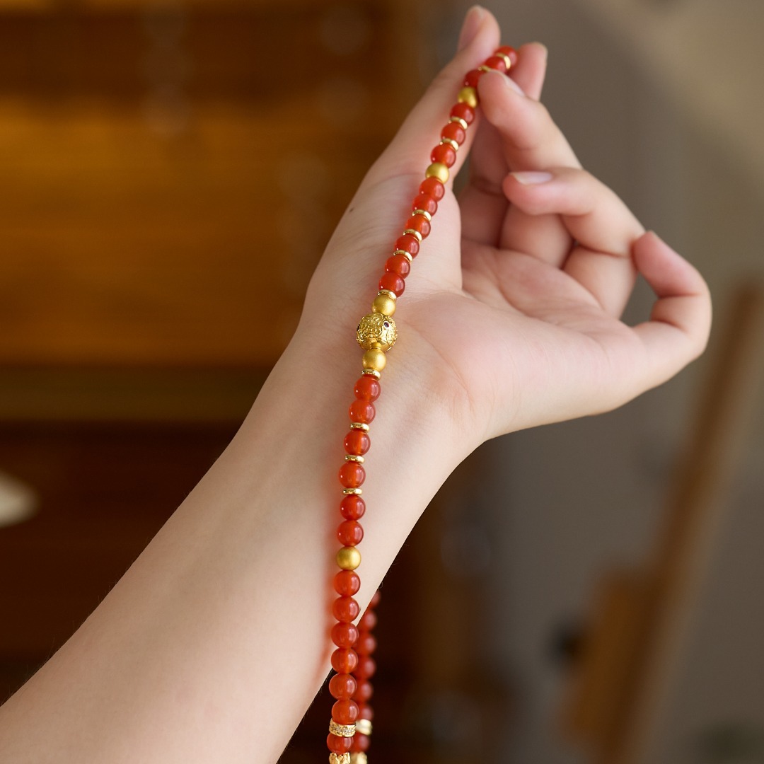 | Main Material | 6MM Red Agate, Copper-plated Gold Accessories, Ancient Sand Gold Copper, Suitable for Wrist Circumference 14-16cm