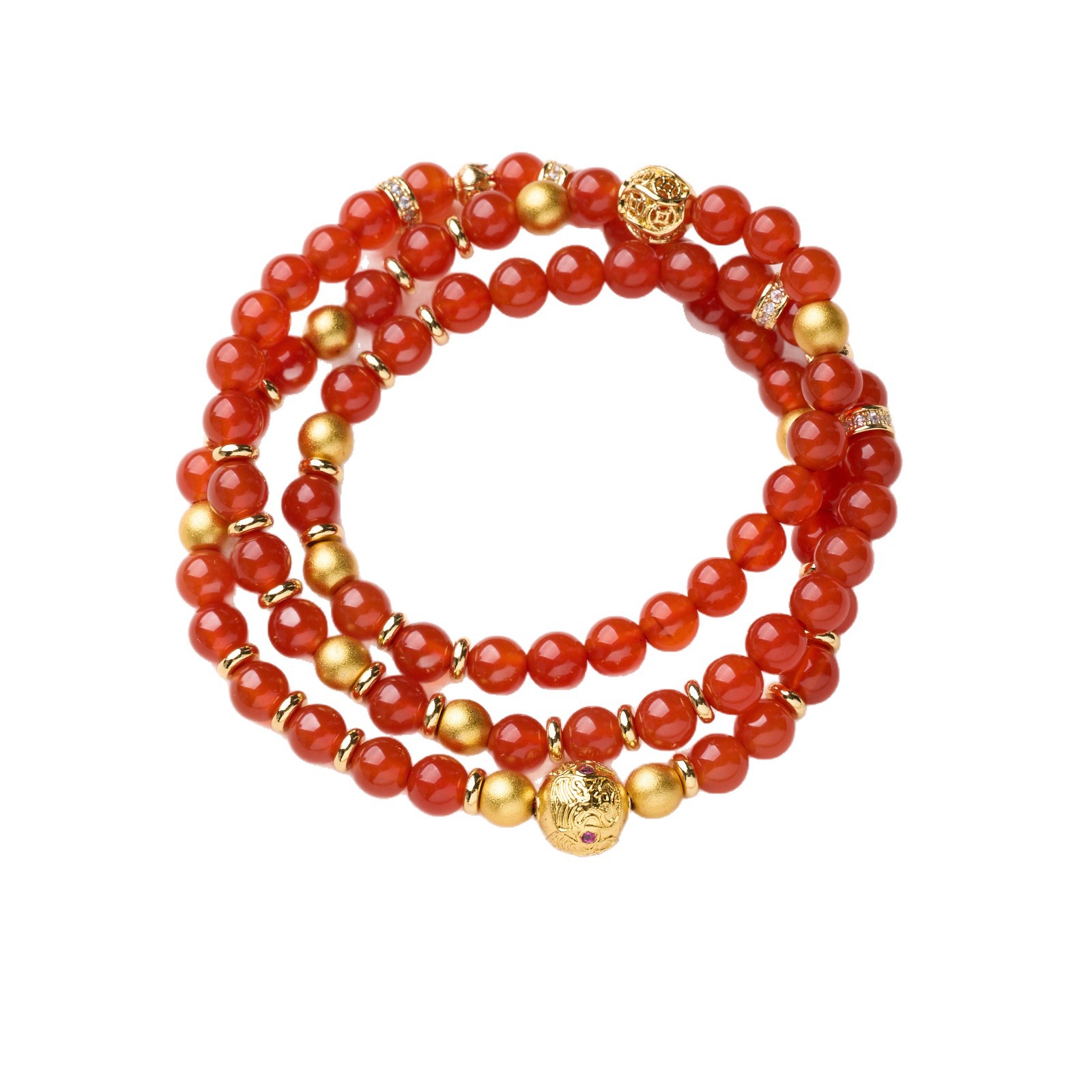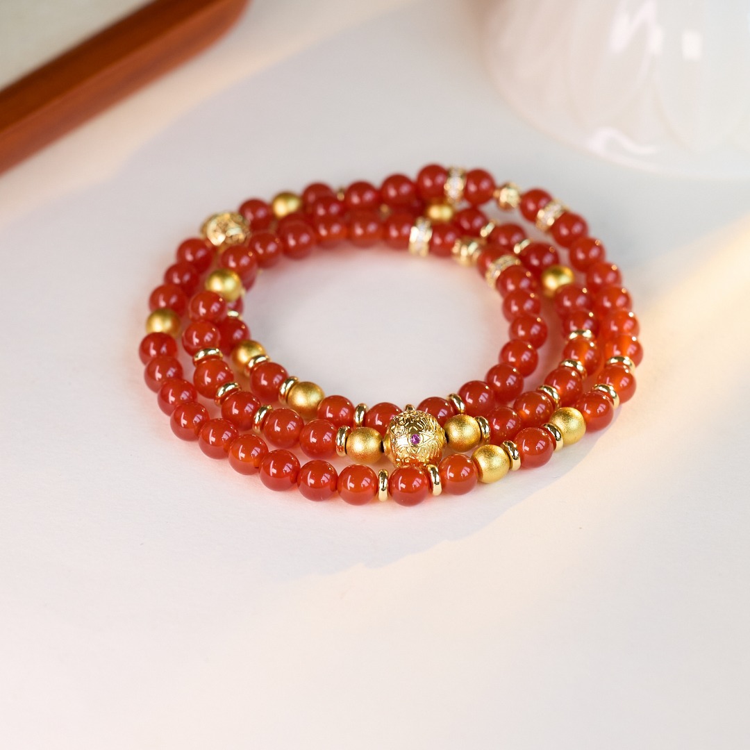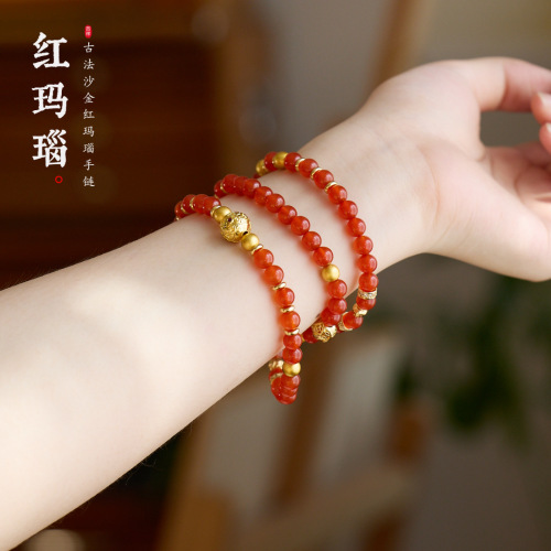 Name6MM Red Agate, Ancient Crafting Gold Sand Bead, Zhajilam Three-Ring Bracelet【Red Agate】6MM Red Agate, Ancient Craft Sand Gold Spacer Beads, Zhajilam Three-Ring Bracelet