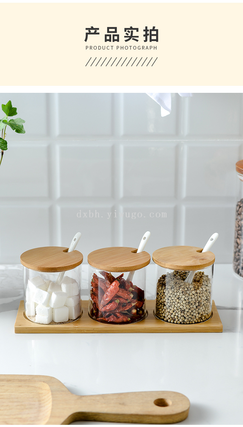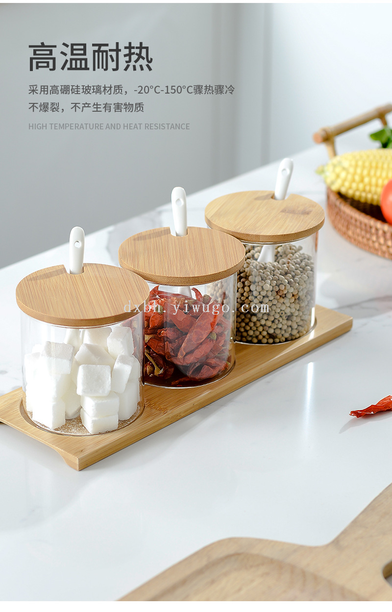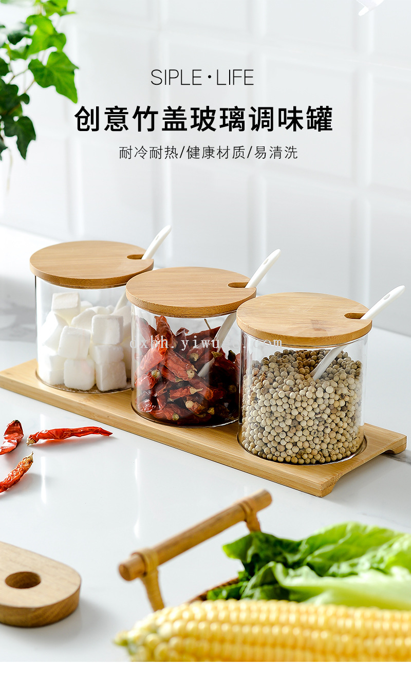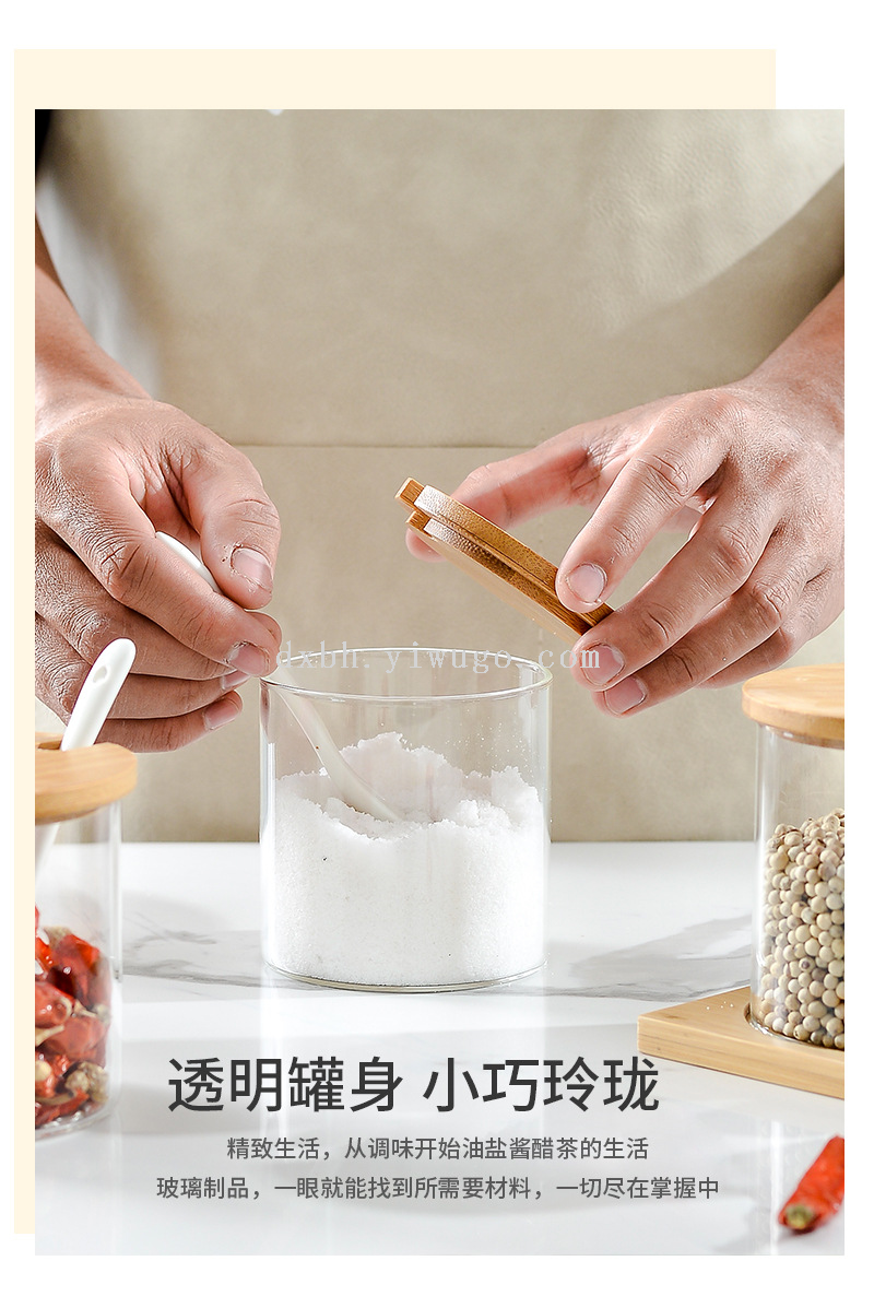 bamboo spice jar japanese-style kitchen transparent glass kitchen household transparent condiment dispenser set with spoon