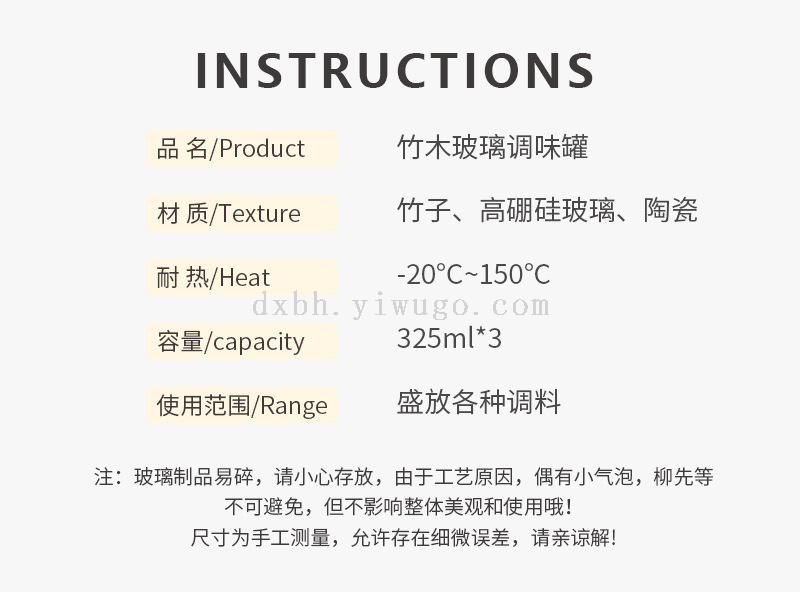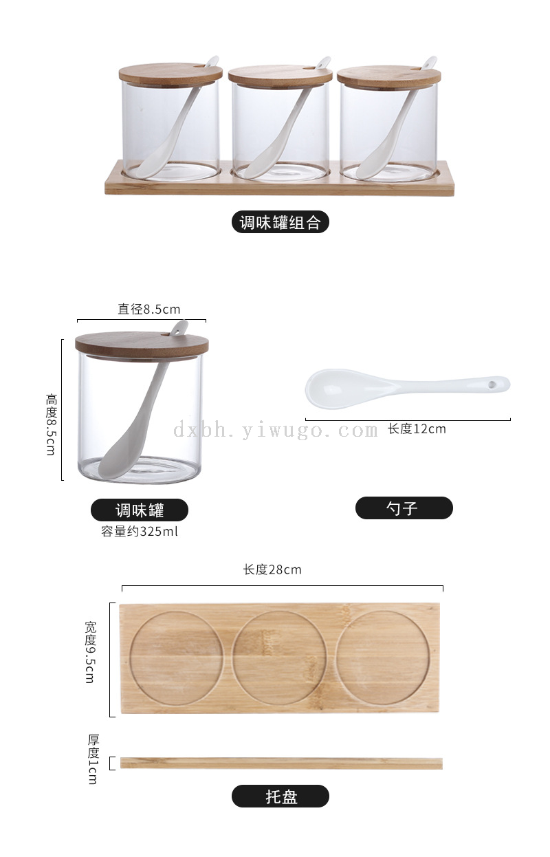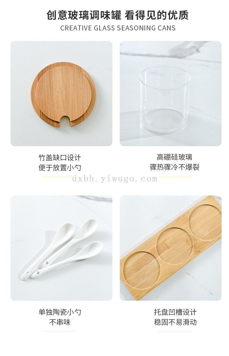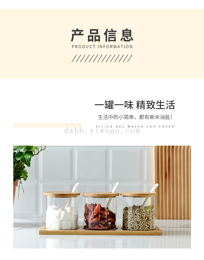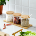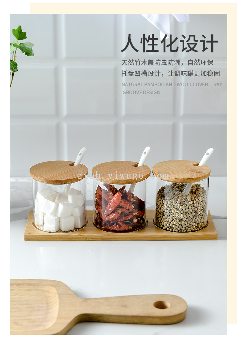 bamboo spice jar japanese-style kitchen transparent glass kitchen household transparent condiment dispenser set with spoon