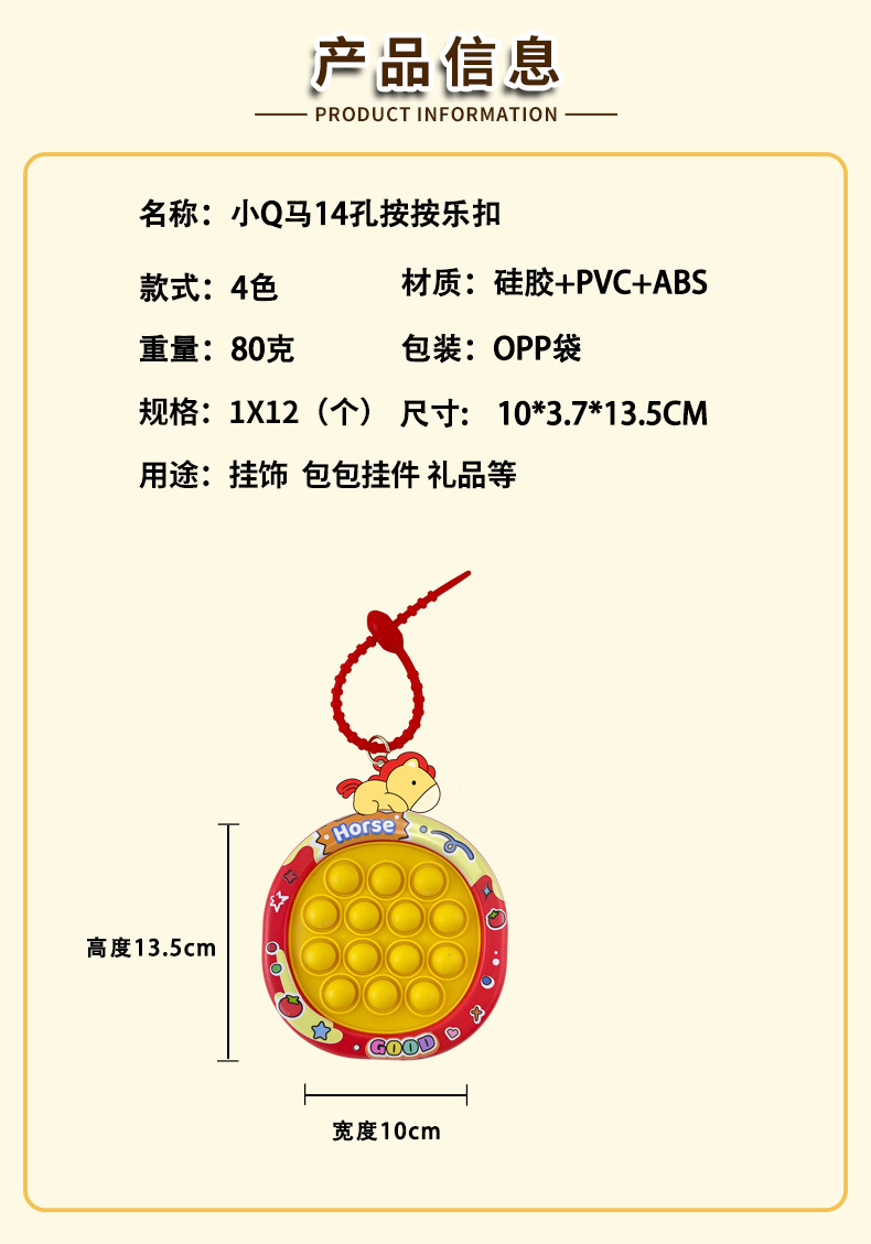 little q horse 14-hole press music creative decompression keychain whac-a-mole children's mini educational toy pendant 中文版