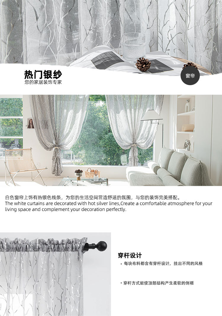 amazon cross-border ready-made curtain hot silver transparent rod mesh curtains factory foreign trade exclusive for curtains 中文版