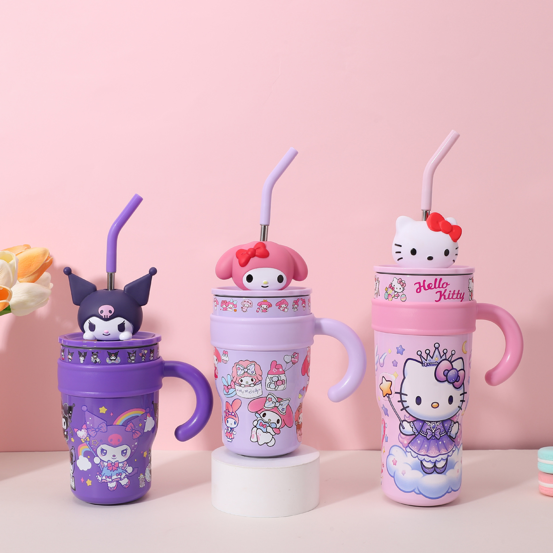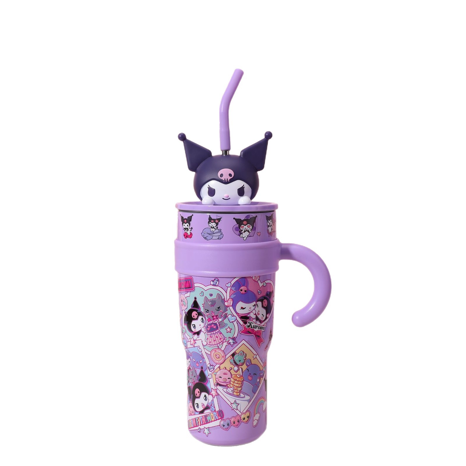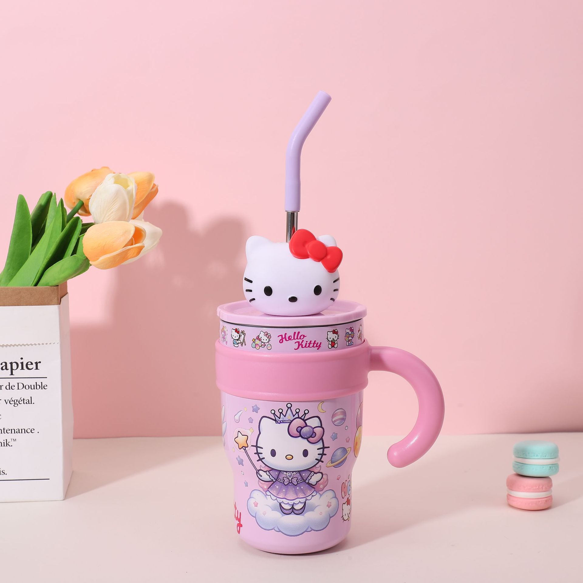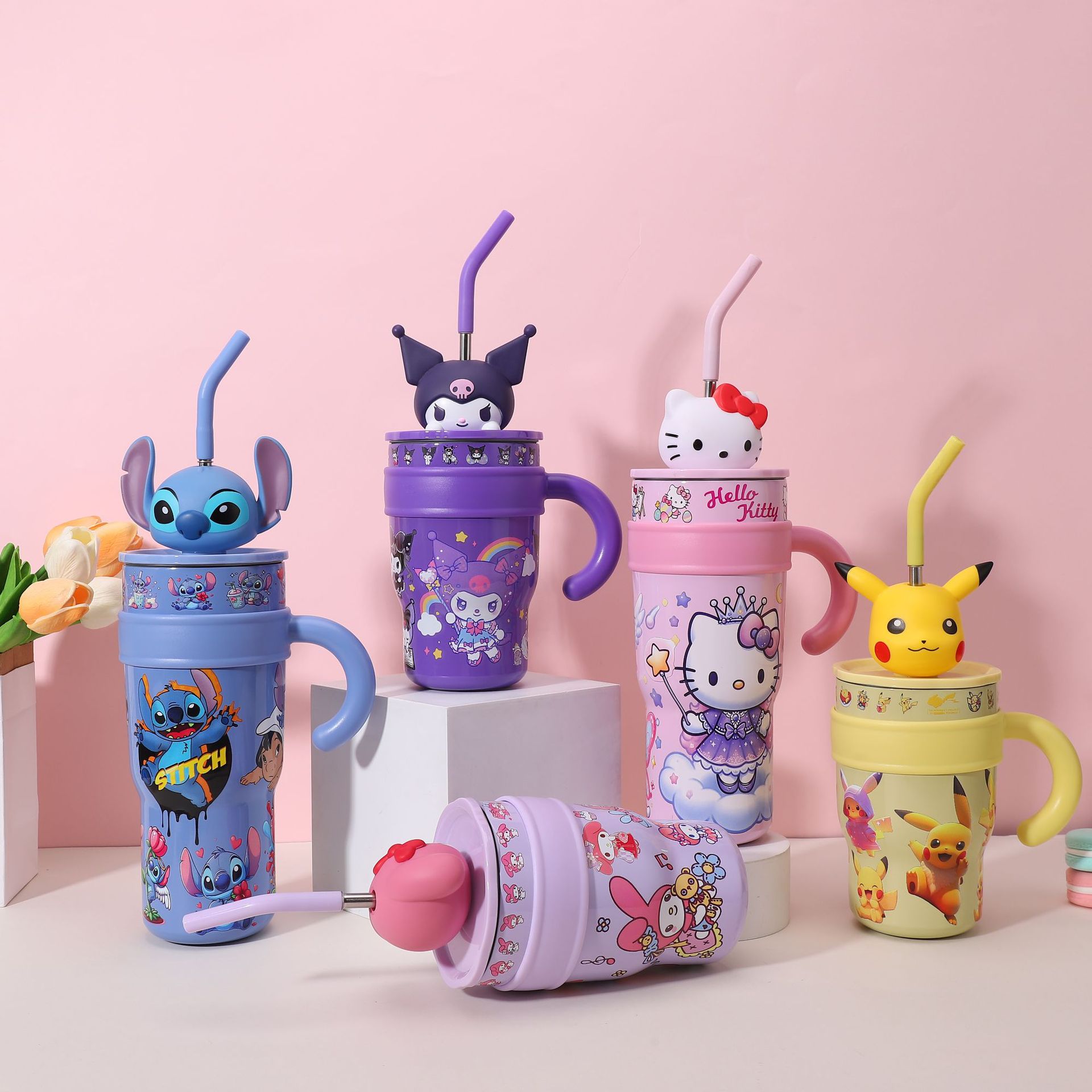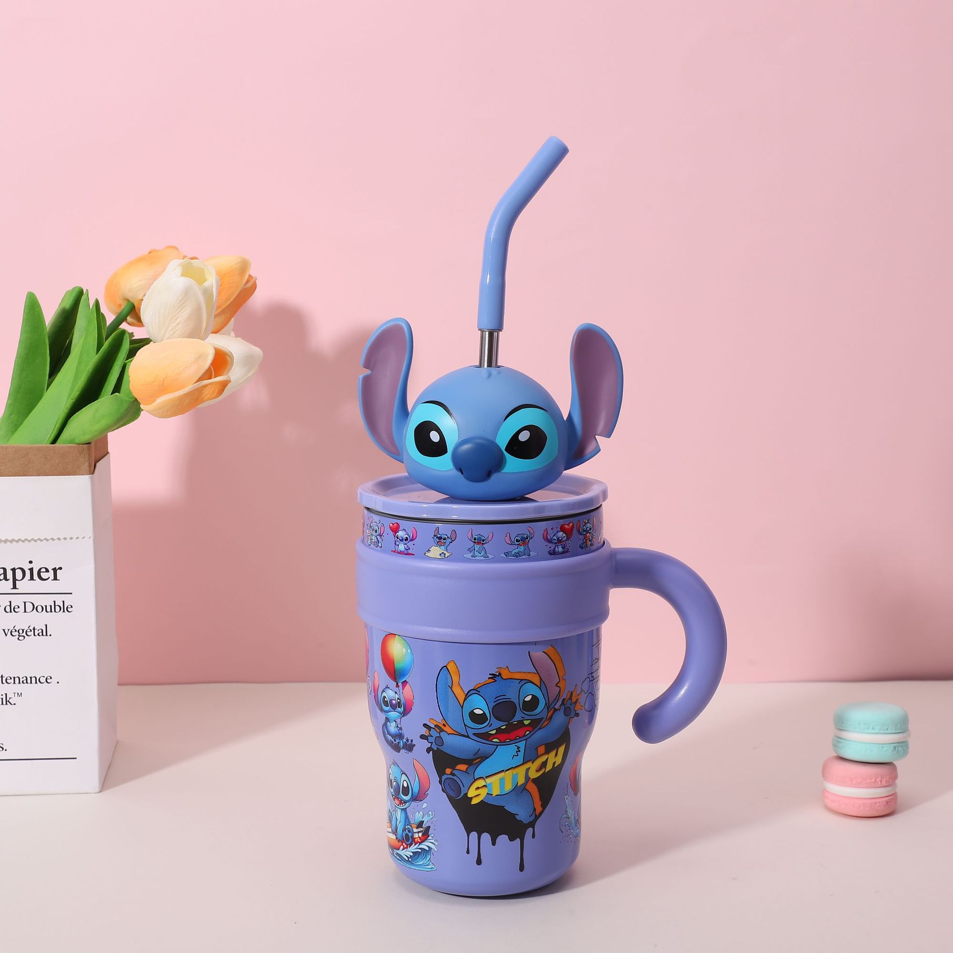 popular good-looking cute stainless steel large ice cup with handle cartoon thermal mug large capacity with straw cup