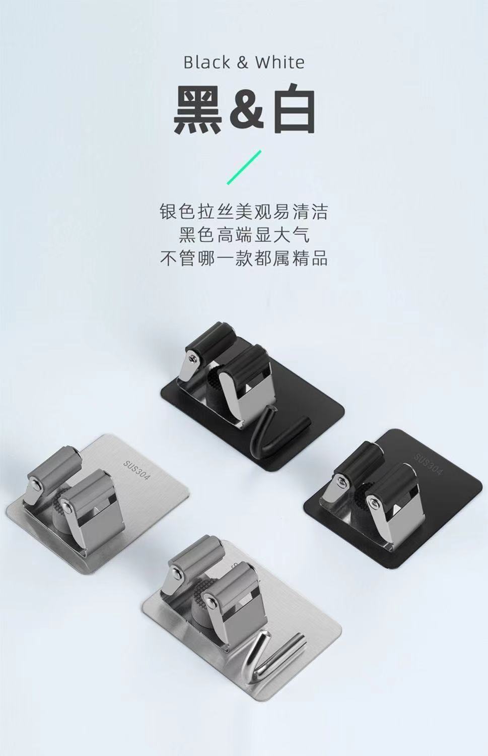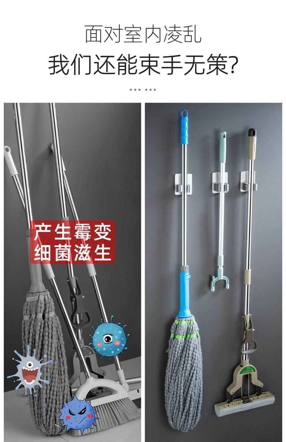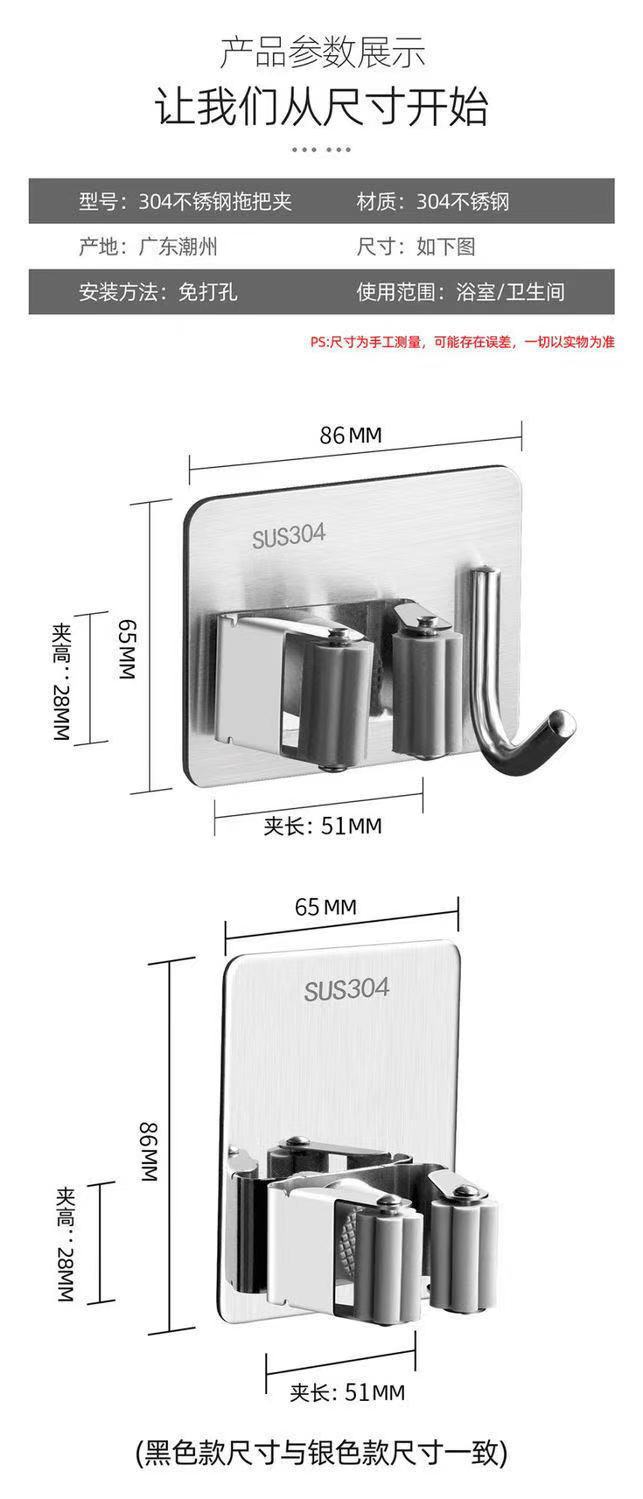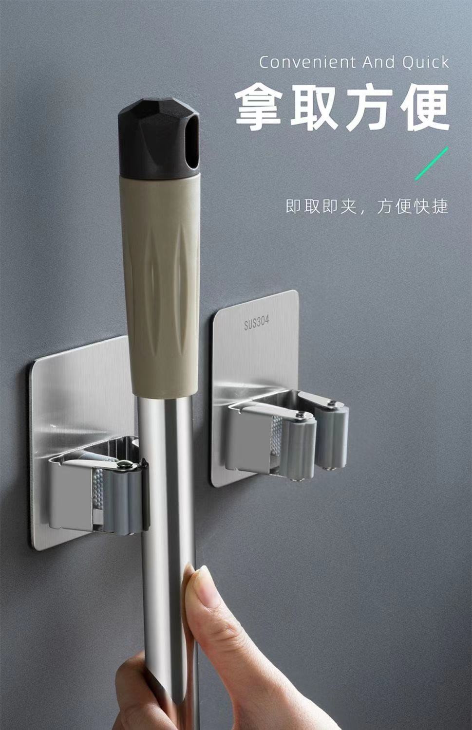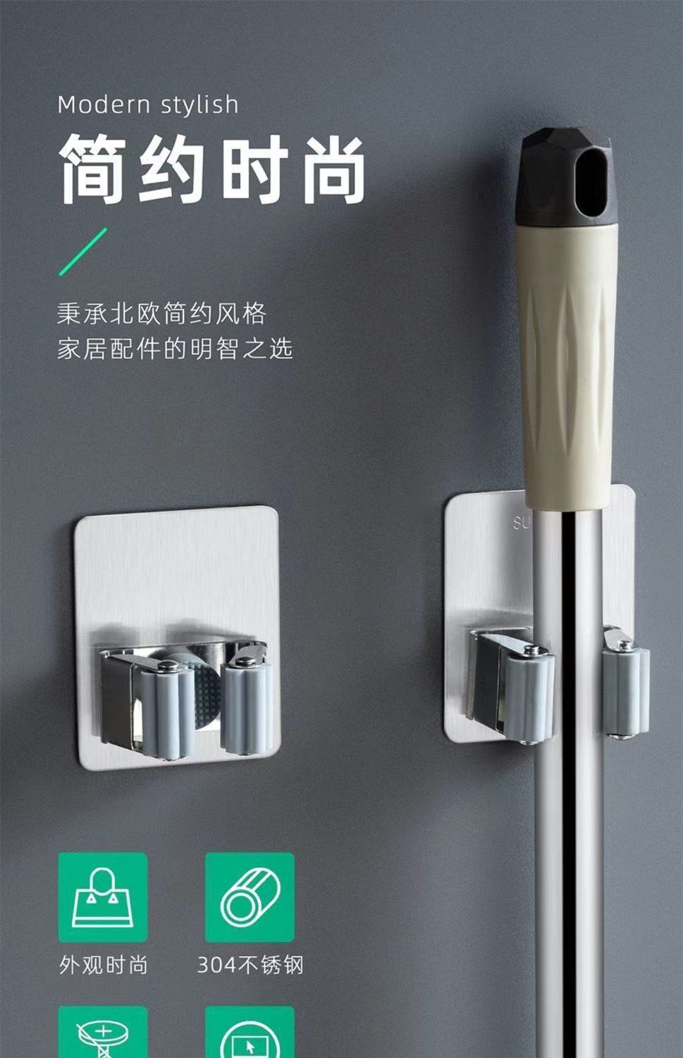 mop hook punch-free bathroom storage artifact sticky hook broom hanger strong adhesive wall mount mop clip