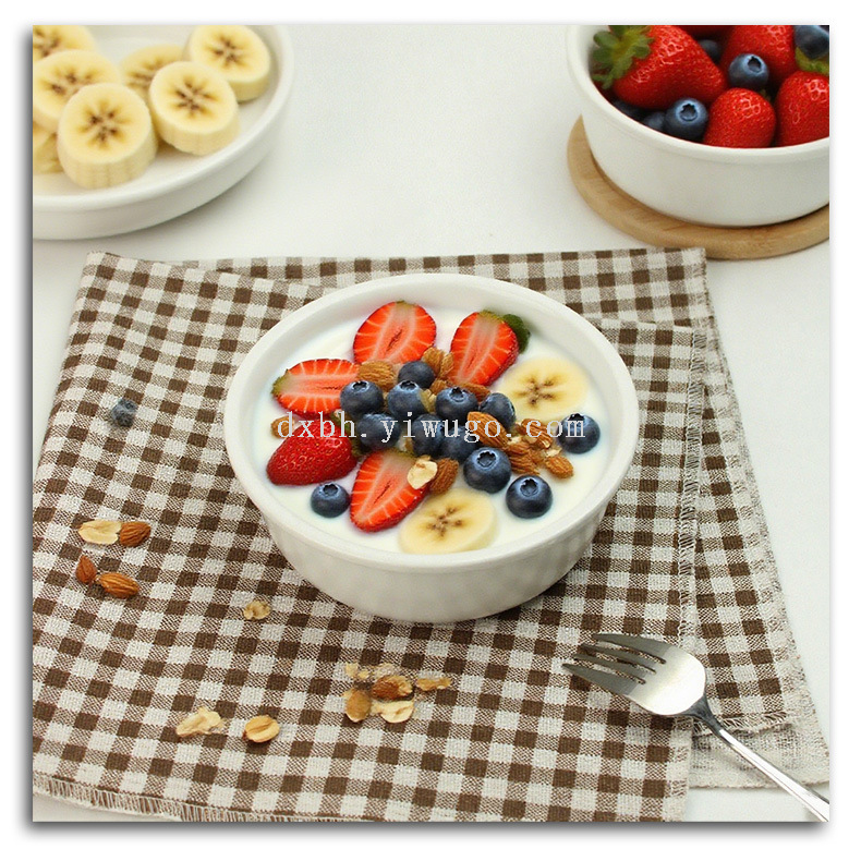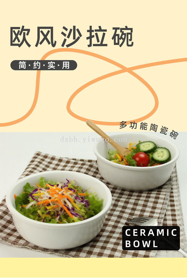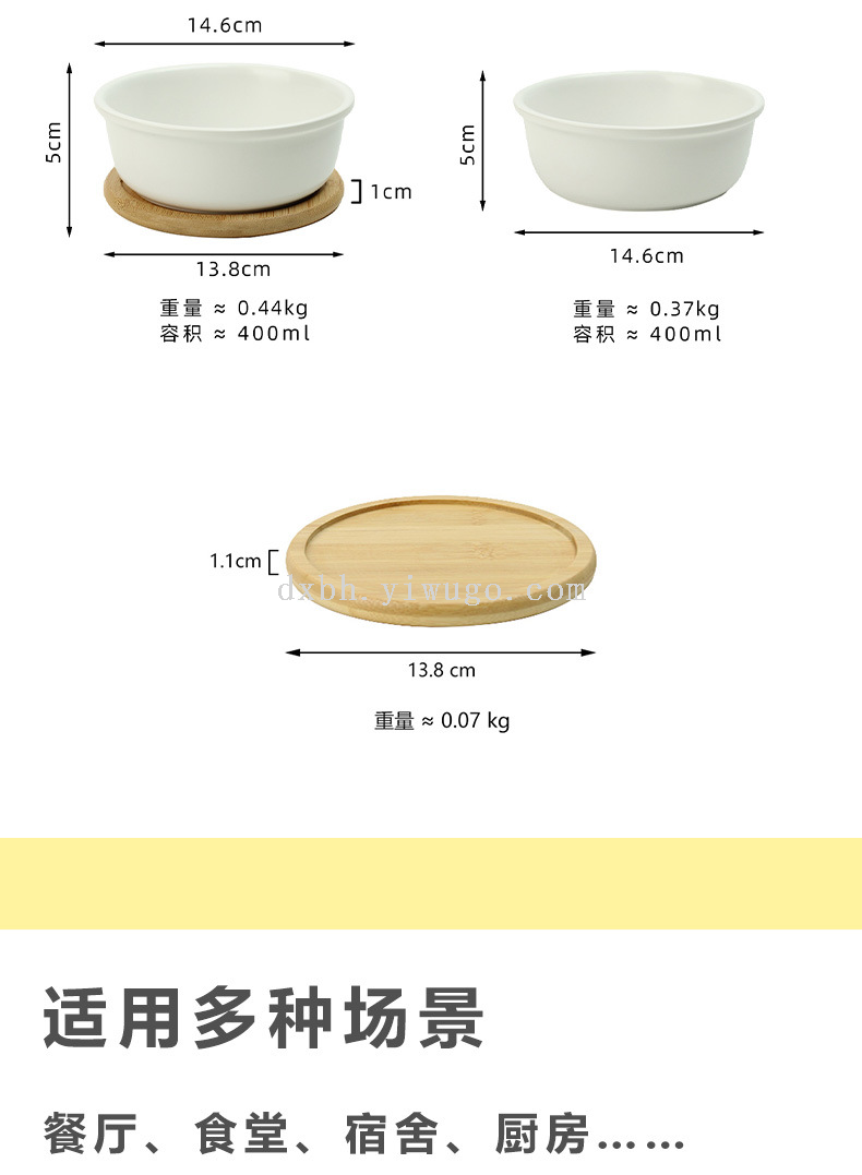 ceramic salad bowl fruit bowl hotel dessert yogurt bowl home instant noodle bowl soup bowl with bamboo tray ceramic tableware