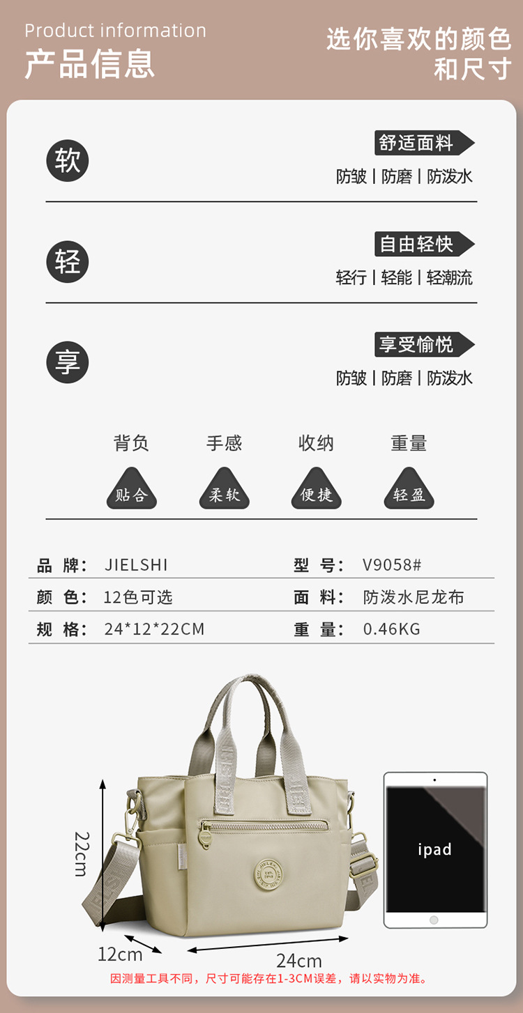 trendy shopping messenger bag versatile large capacity shoulder bag new women's handbag lightweight waterproof nylon cloth bag 中文版