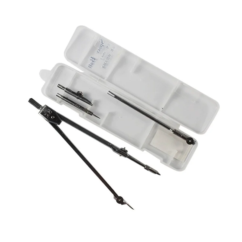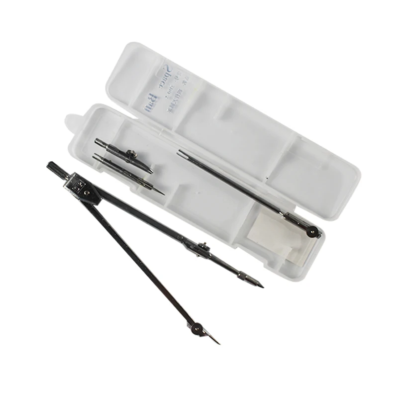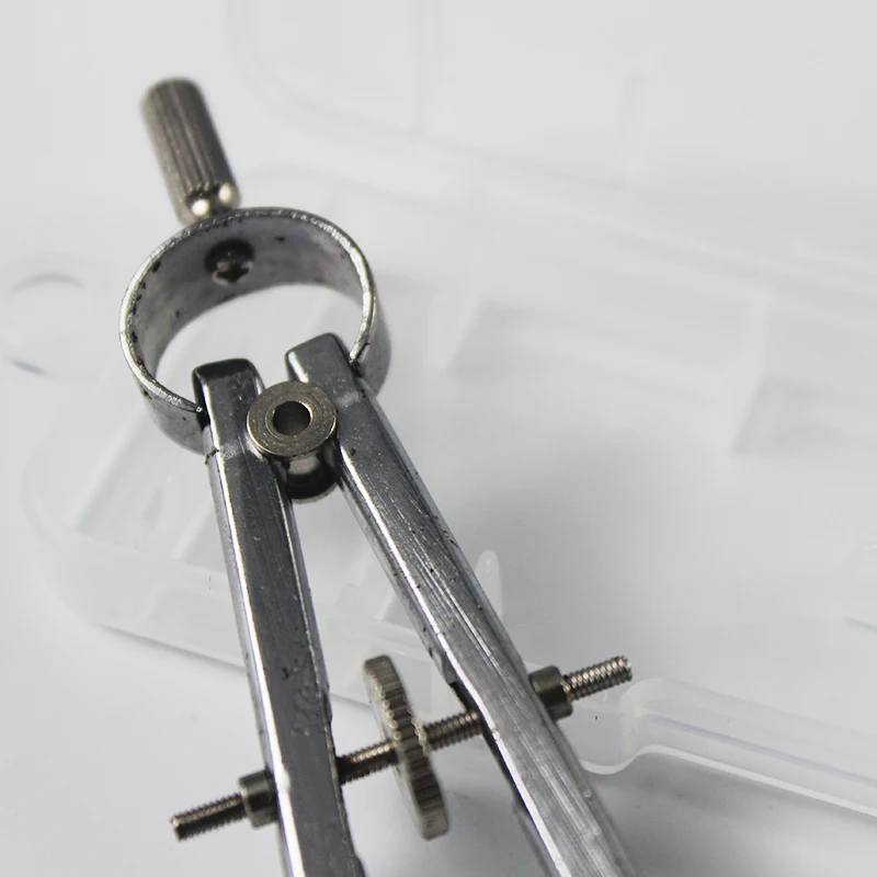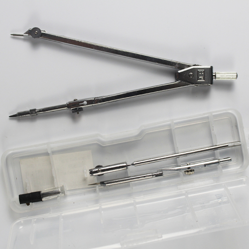 Introduction: A compass consists of a pen head, a pivot shaft, compass legs, a ruler, a folding leaf, a pen body, a pen tip, a compass tip, and a small ear. The lower end of the pen head is inserted and connected to the upper end of the pen body, the lower end of the pen body is threaded and connected to the upper end of the pen tip, the flat end of the small ear is welded in the middle of the outer side of the compass leg, and the lower end of the compass leg is clamped and connected to the upper end of the compass tip. Features: One side of the pen body is attached and connected to one side of the folding leaf, and the other side of the folding leaf is attached and connected to the middle of one end of the ruler. The upper ends of the pen body's gap are inserted and connected to both ends of the rotating shaft, and the shaft body of the rotating shaft is connected to the upper end of the compass leg through a sleeve. Function: In addition to drawing circles and measuring line segments, it can also be used as a ruler and protractor.