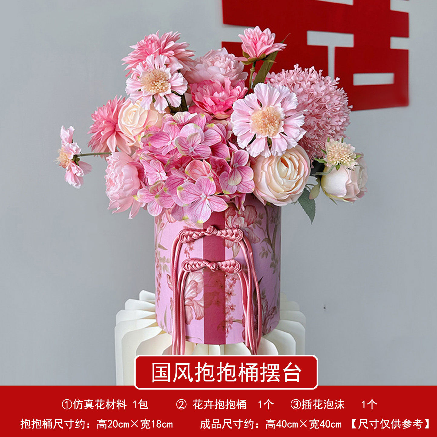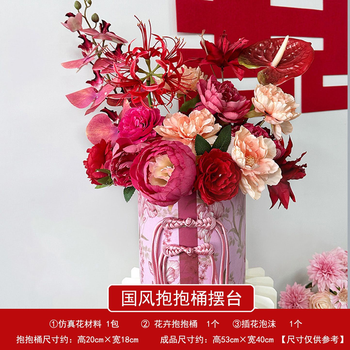 red flower pot + red artificial flower material package
