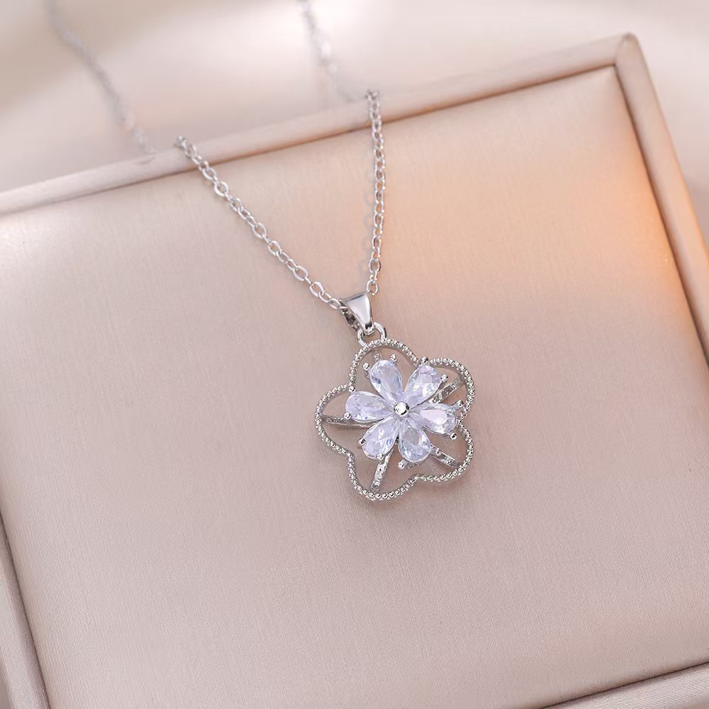 x3192 steel rotating flower necklace