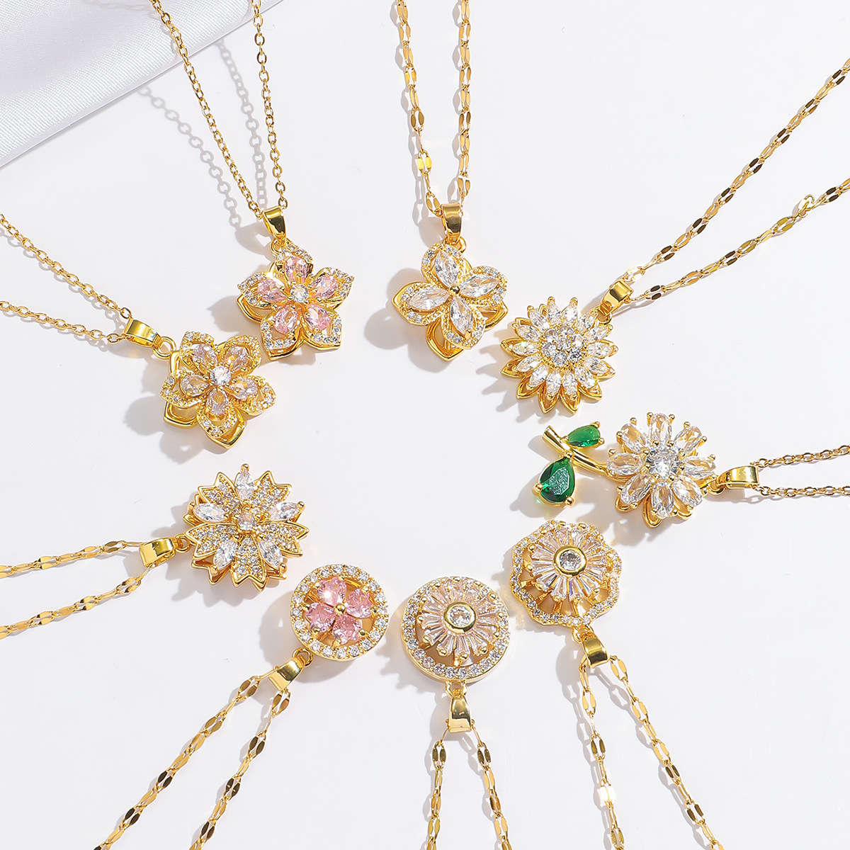 x3175 zircon sunflower rotating necklace
