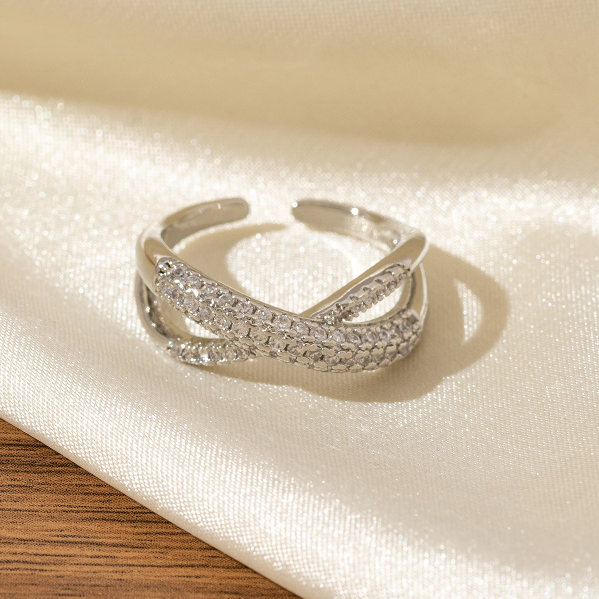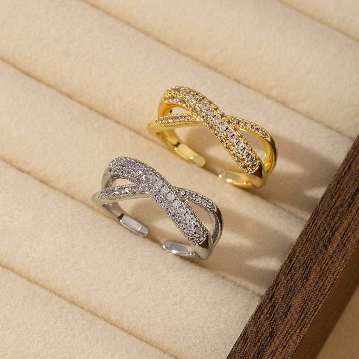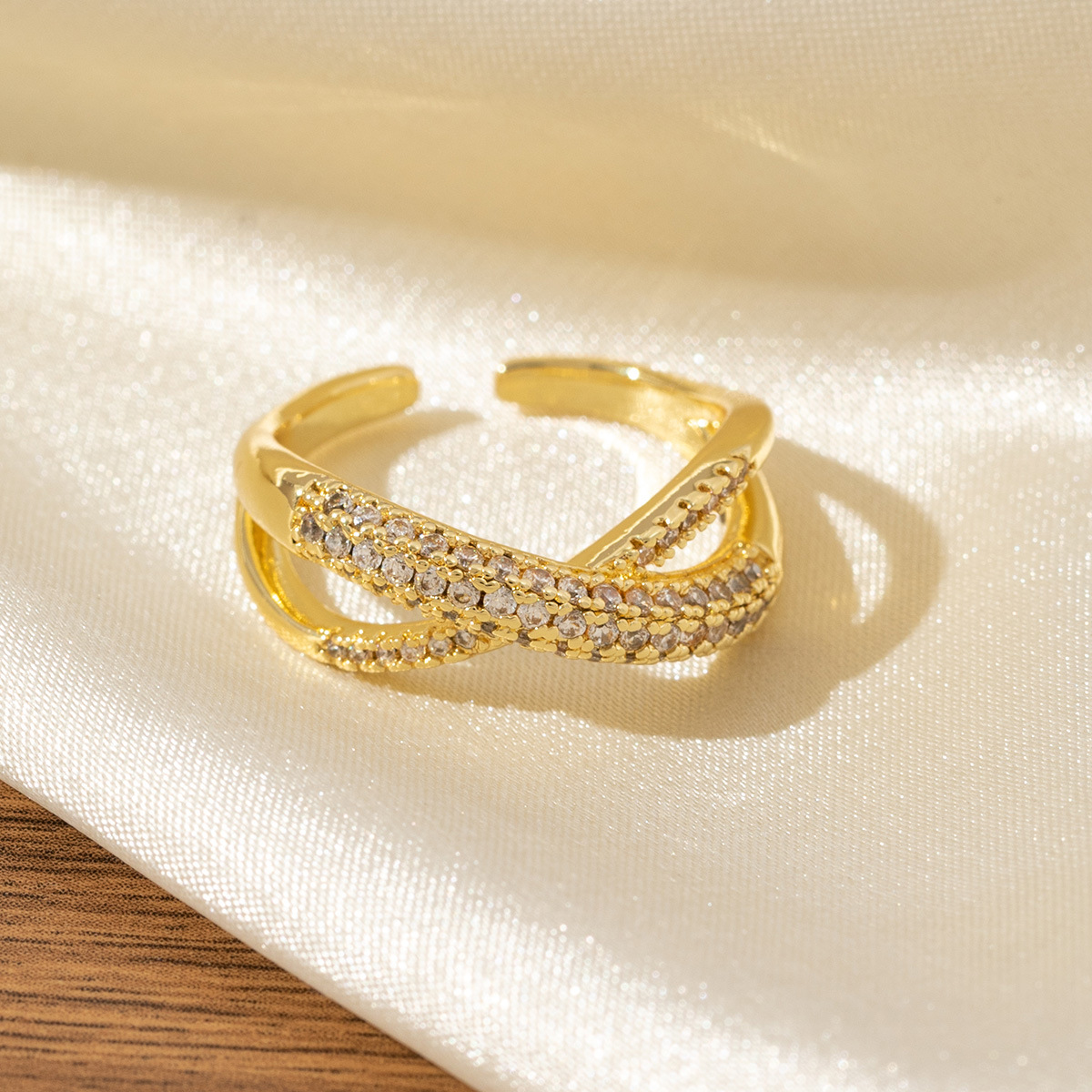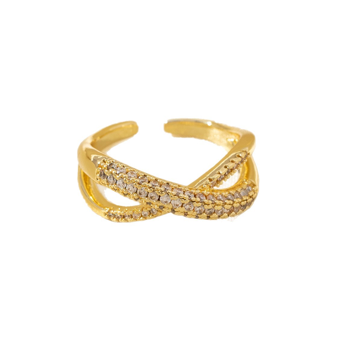 dense inlaid zircon x-shaped women's ring copper-plated gold unique and exquisite fashionable temperamental all-match light luxury ring does not fade 中文版