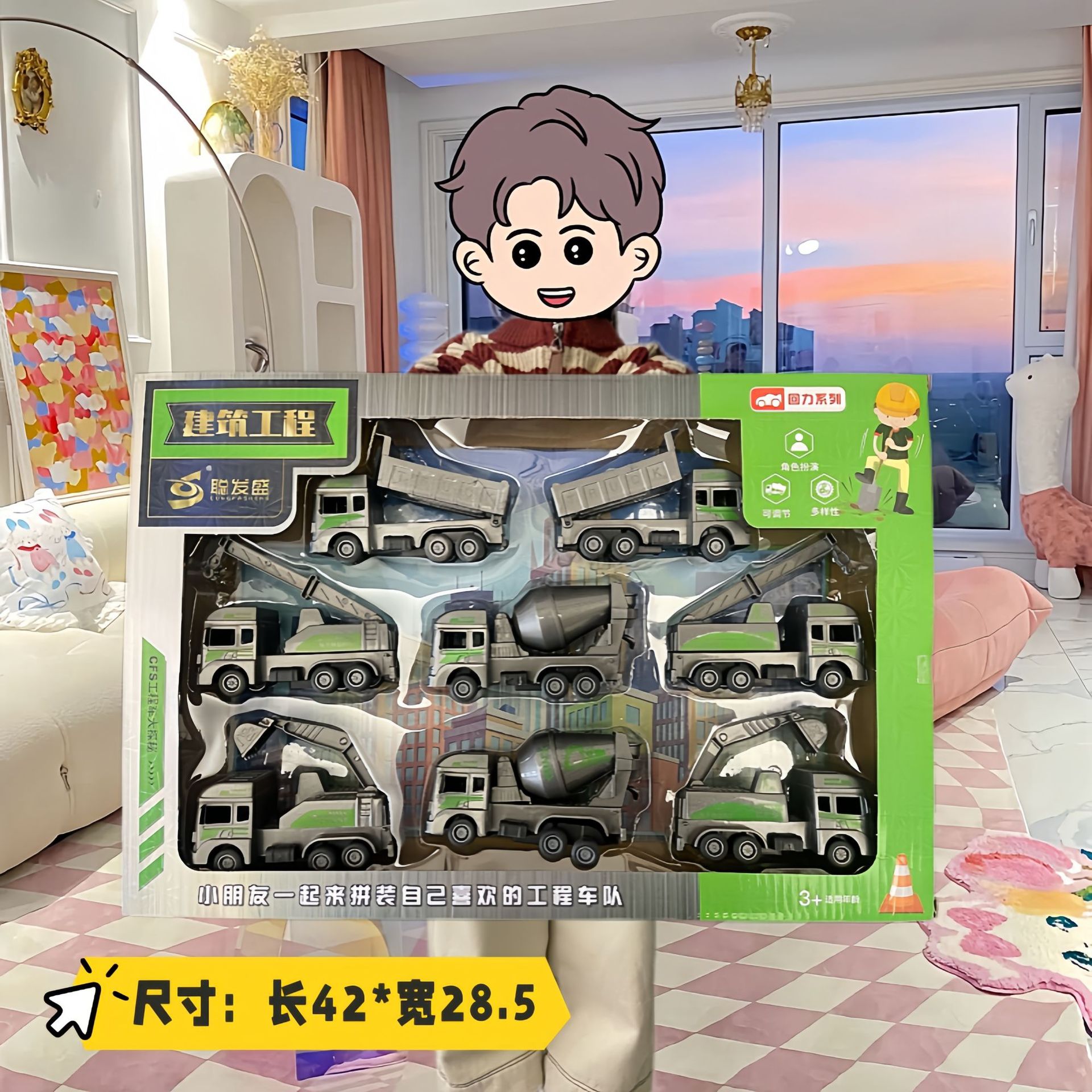 125-28 engineering vehicle big collection-6 vehicles (oversized color box)