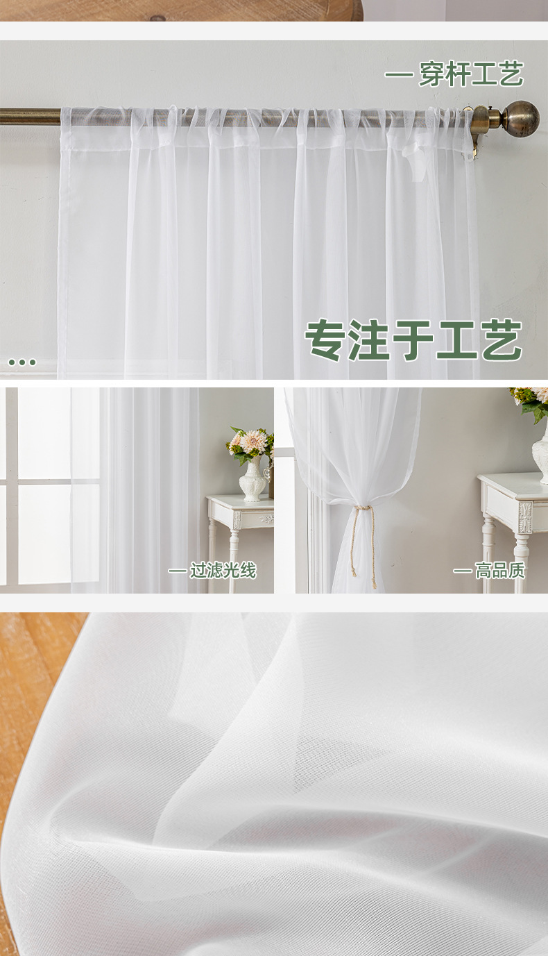 temu finished product delivery foreign trade cross-border solid color terylene curtain mesh curtains half shade window screen factory wholesale 中文版