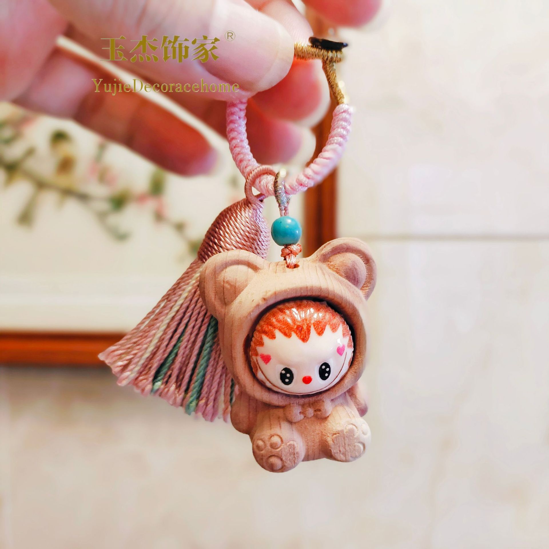 Material: Blood Cypress Wood, Resin Labubu