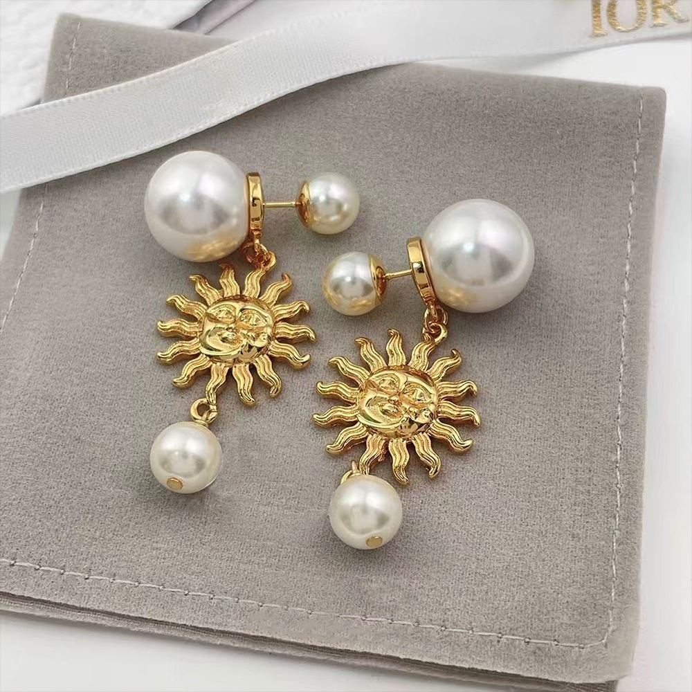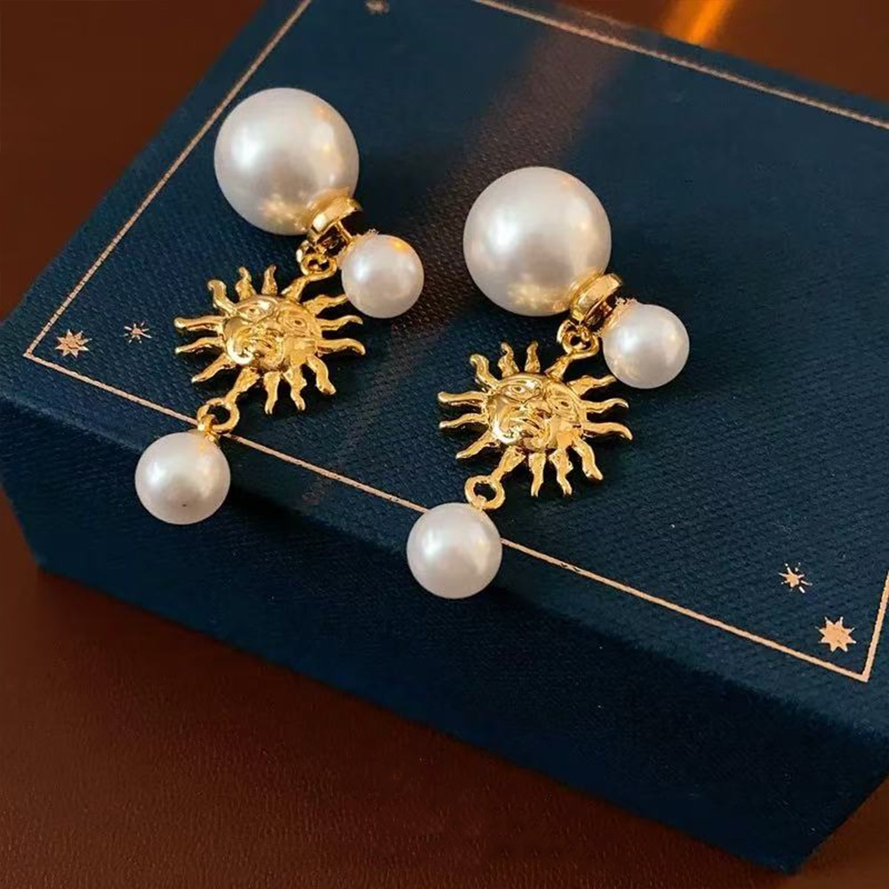 french style personalized sunflower large and small pearls stud earrings women's mid-ancient vintage light luxury temperament high-grade earrings