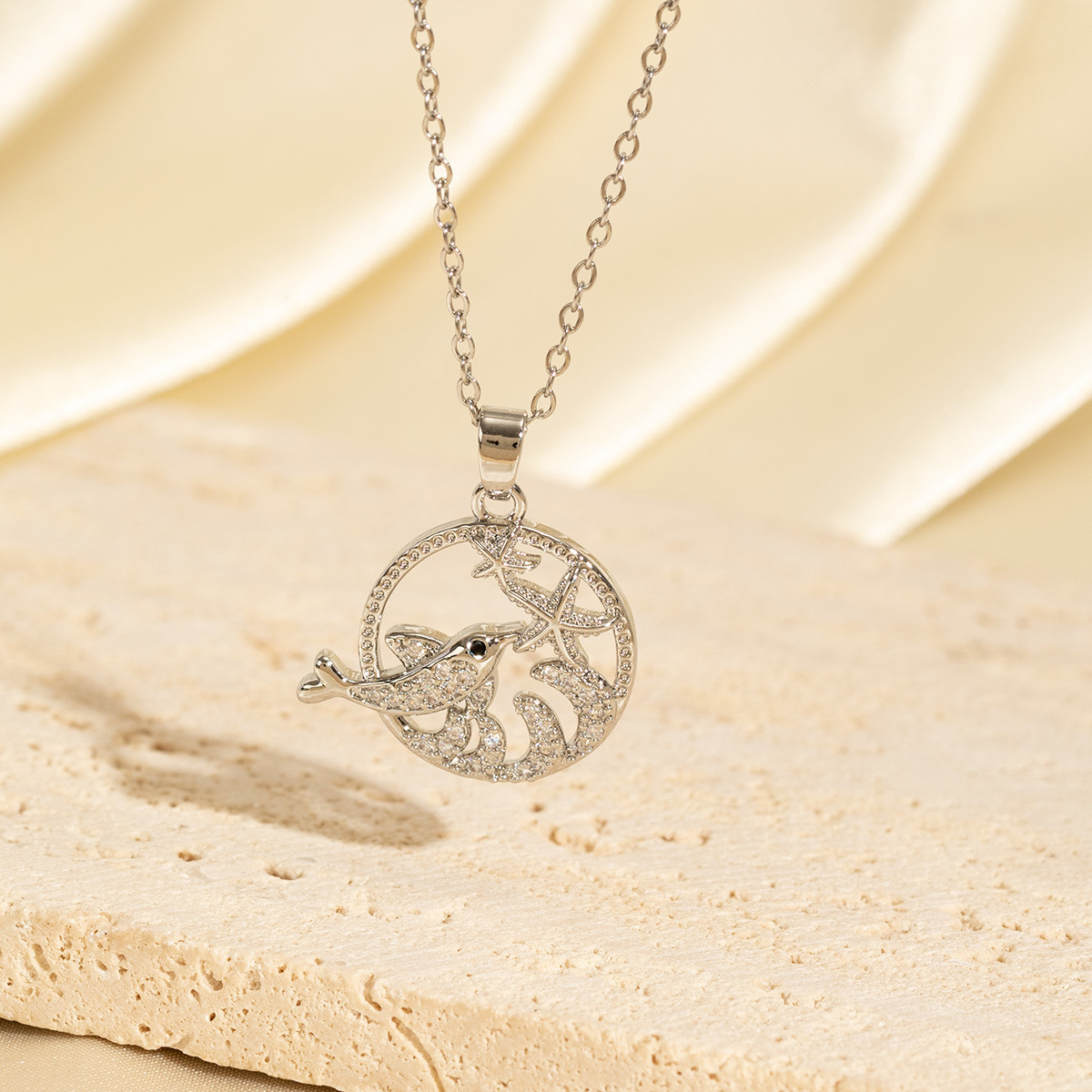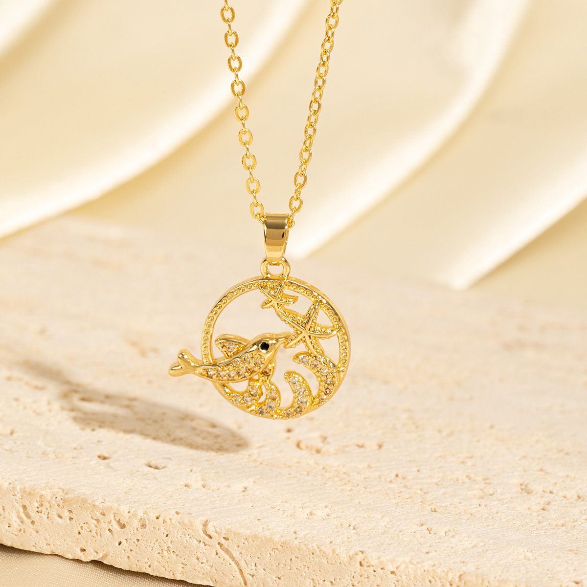 [customized] copper-plated gold inlaid zirconium hollow whale necklace women's non-fading special-interest design fashion commuter necklace 中文版