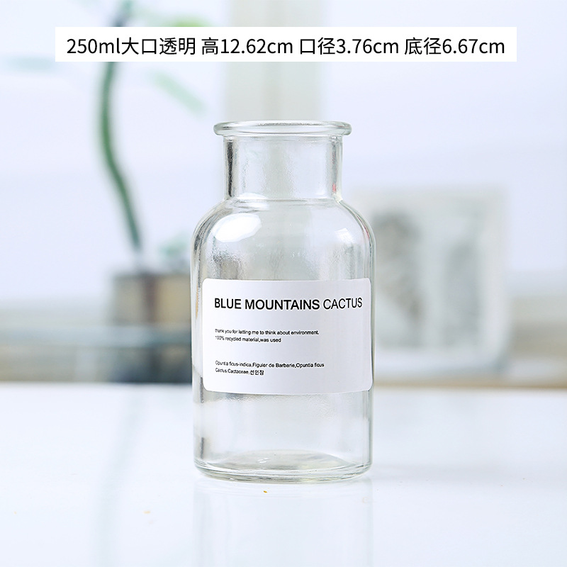 250ml transparent large mouth + white square sticker