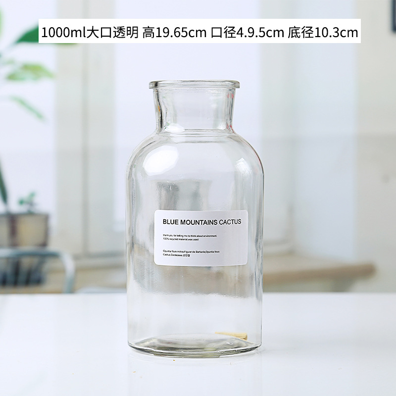 1000ml transparent large mouth + white square sticker