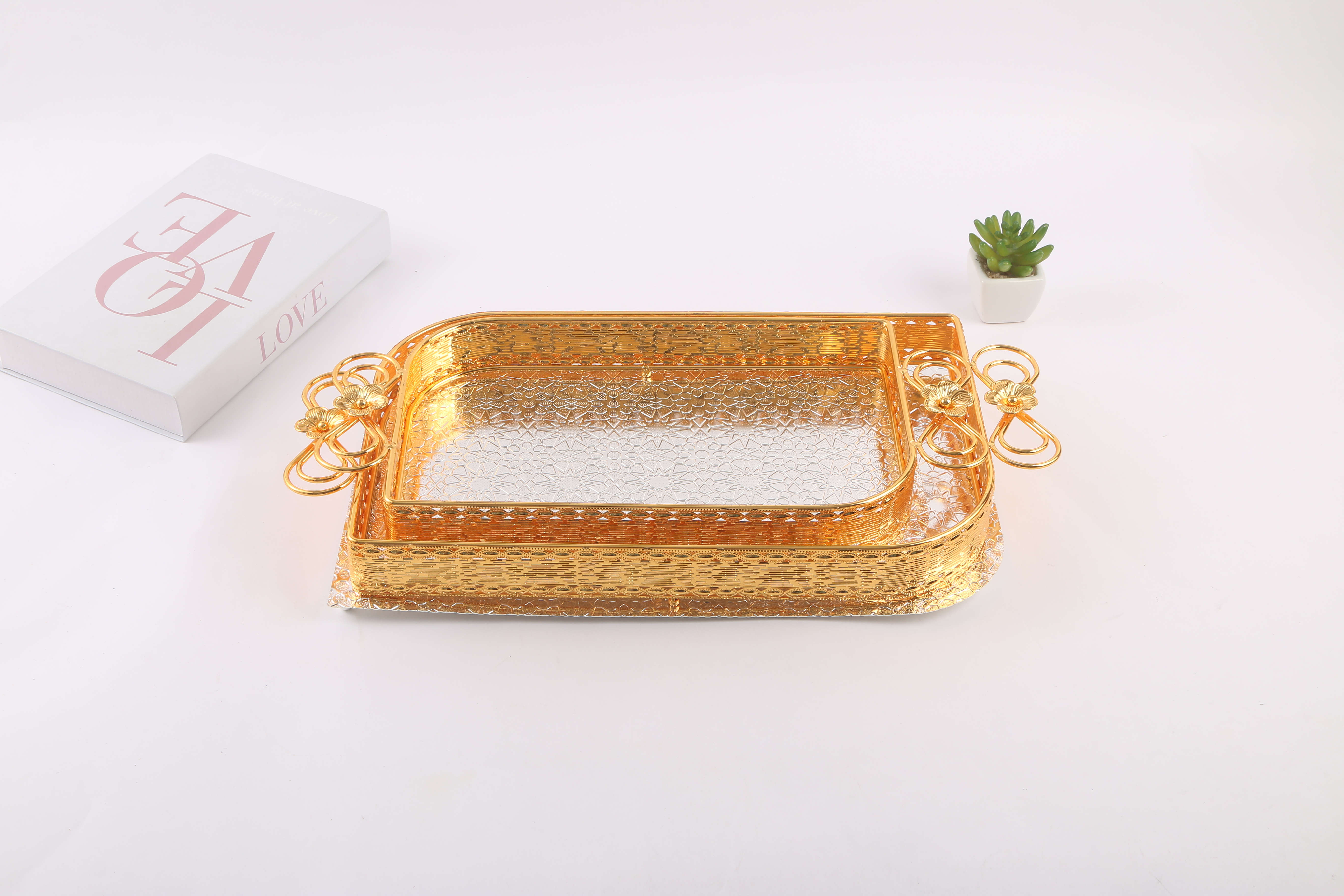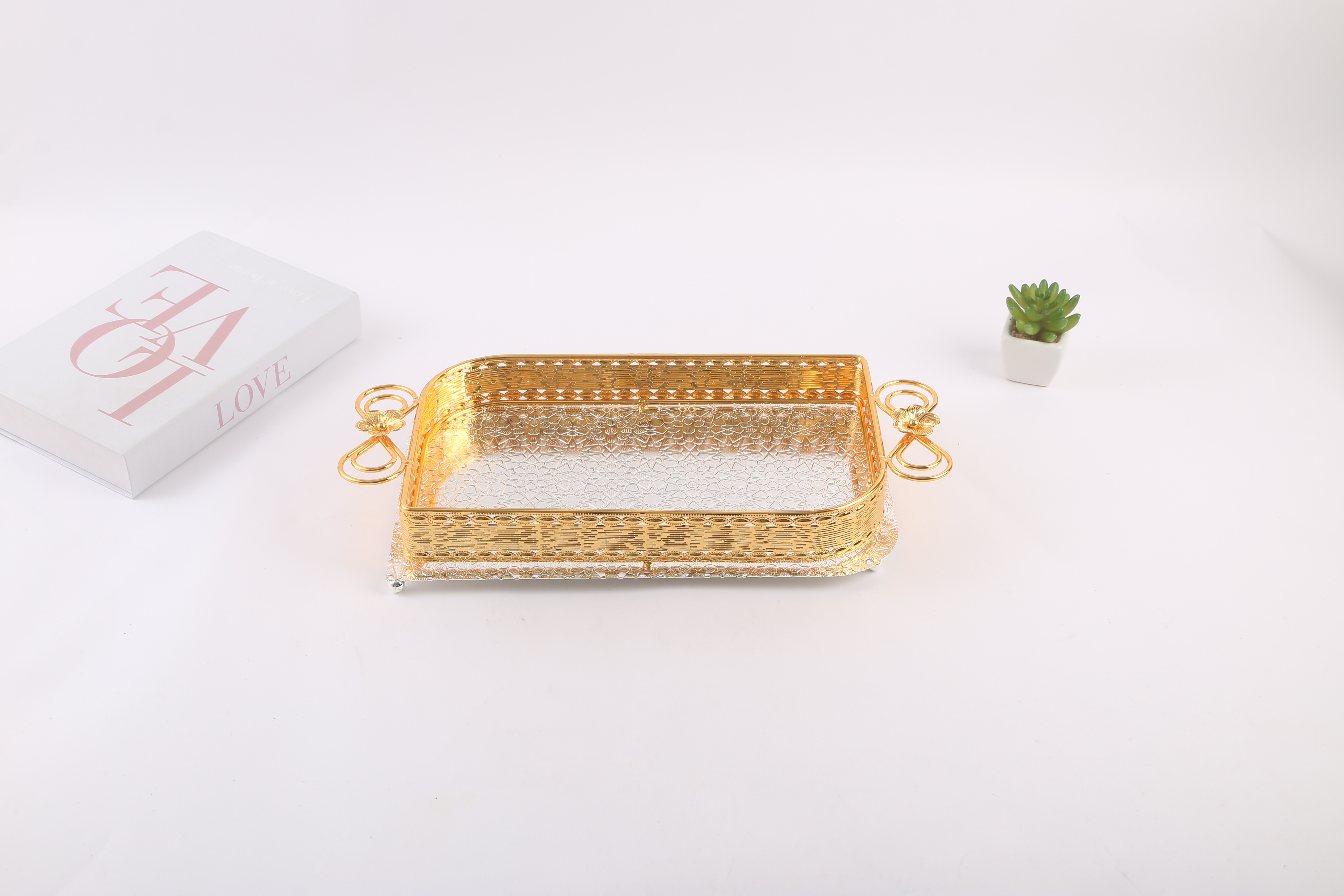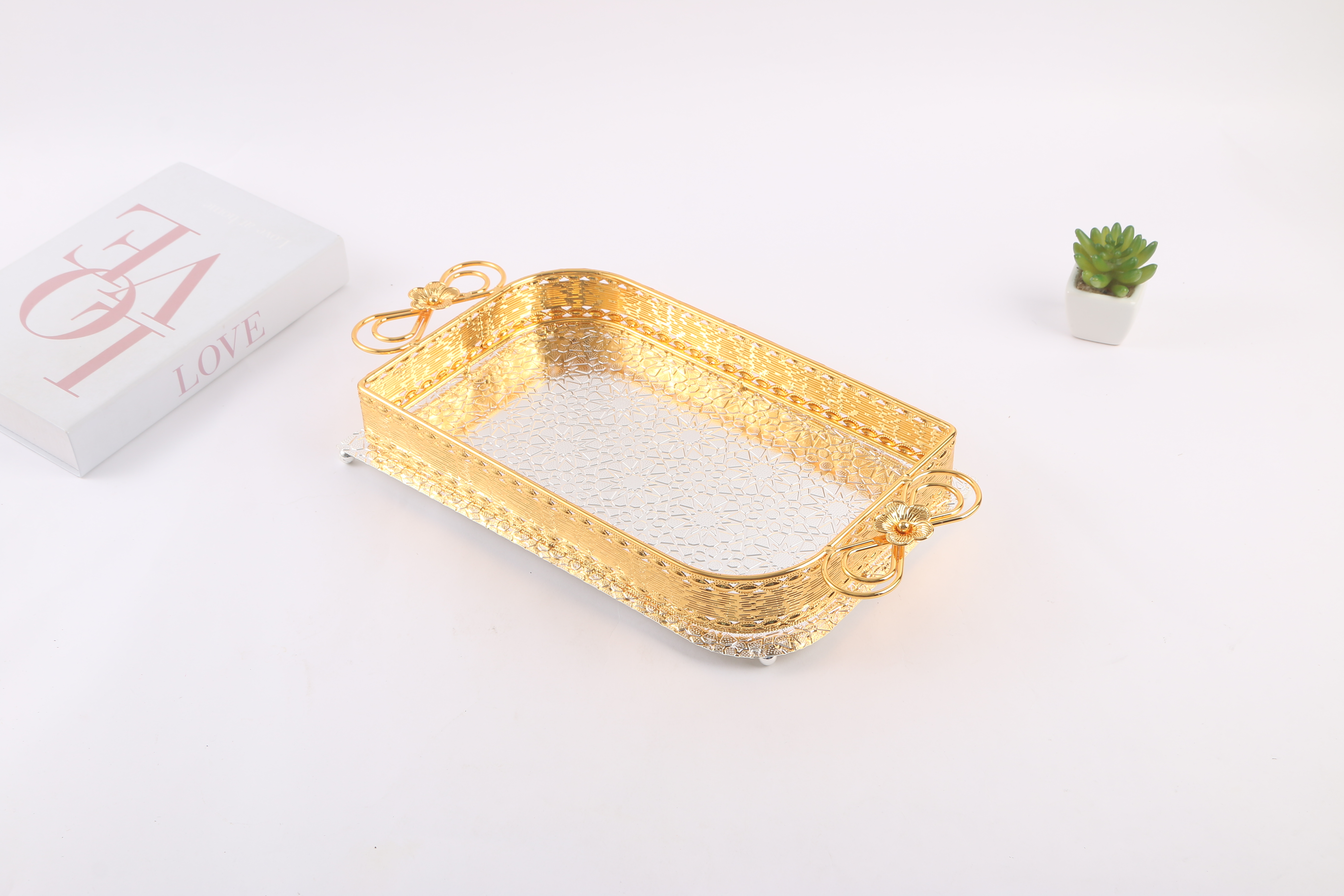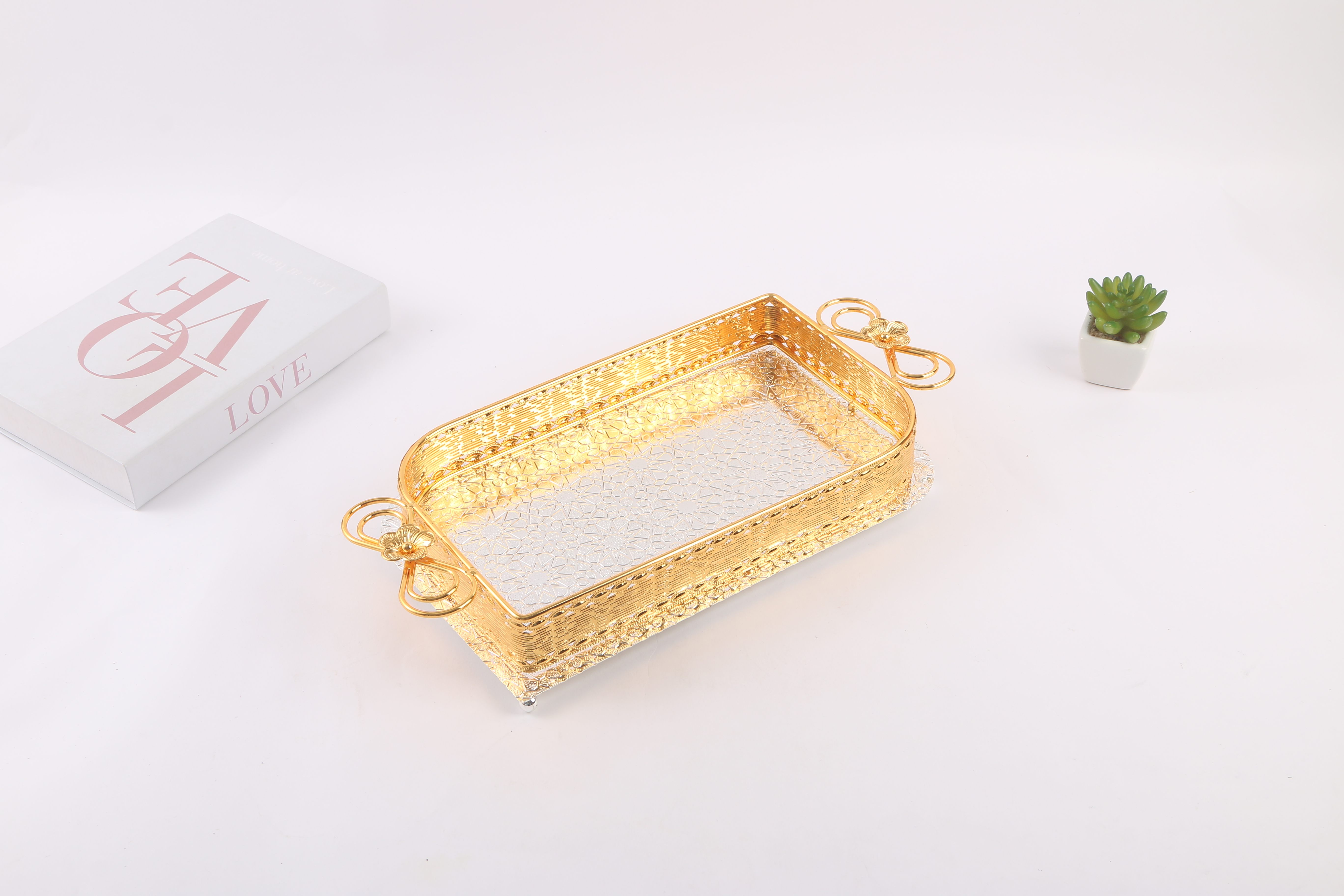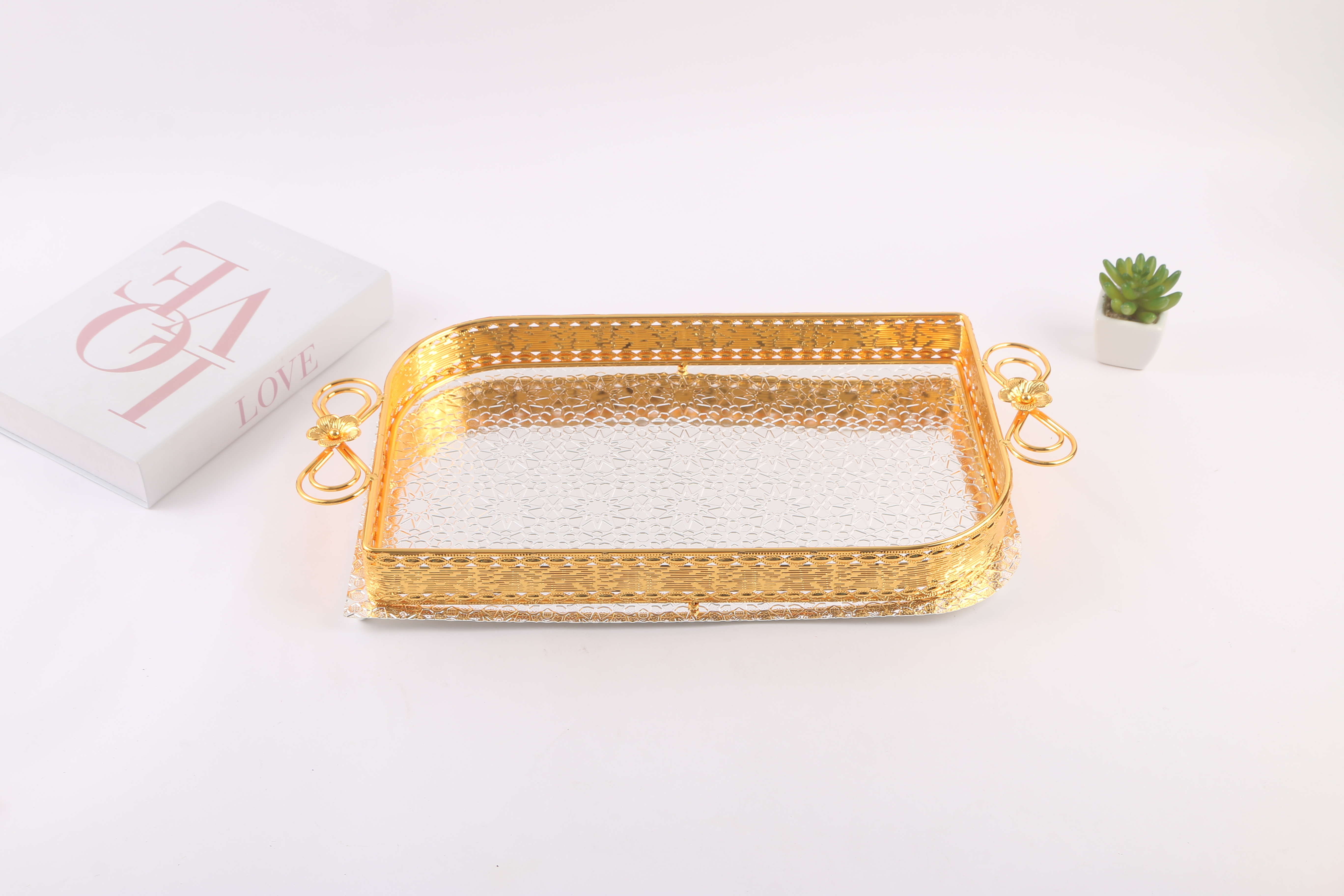 light luxury creative coffee table dining tray household living room fruit plate tea cup snack storage tray mirror glass metal plate 中文版