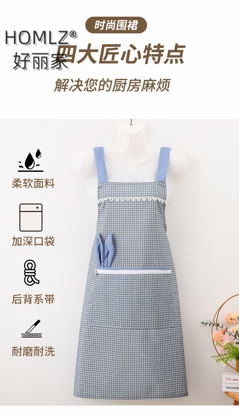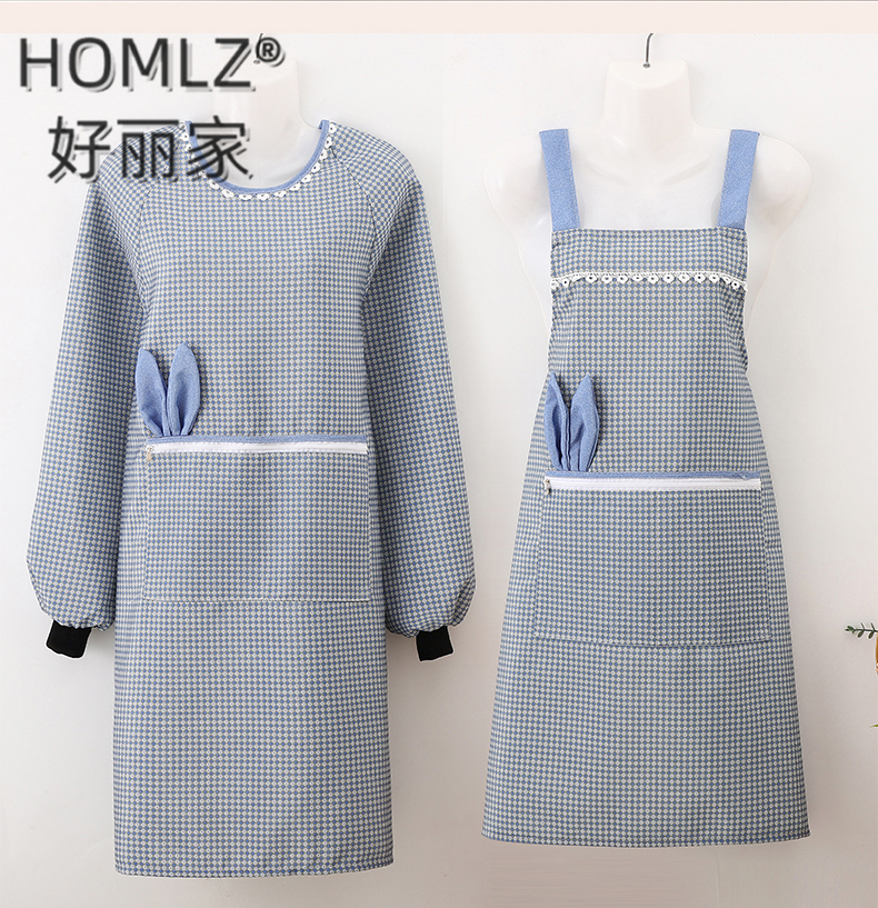 korean style canvas long sleeve fashion apron home kitchen cooking apron women's catering work clothes for hotel work 中文版