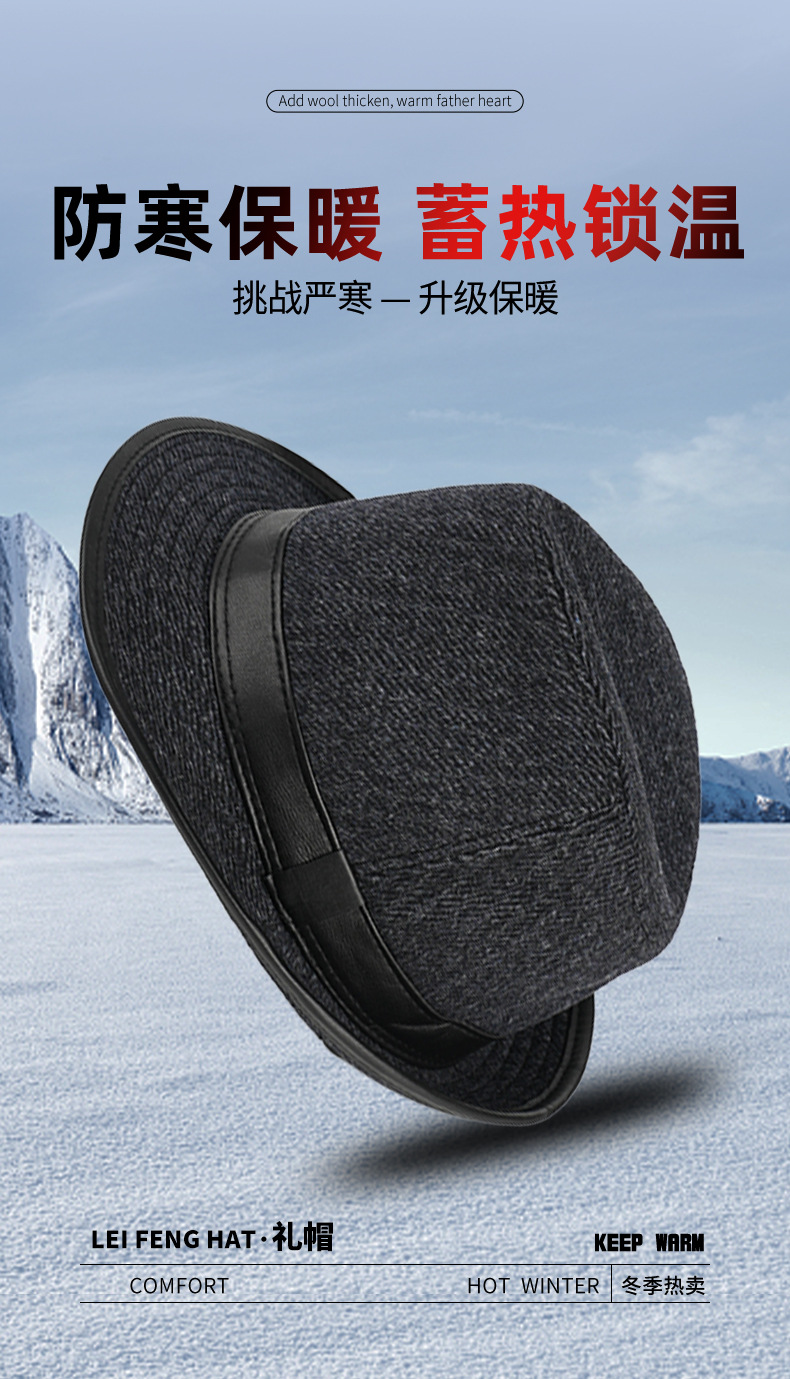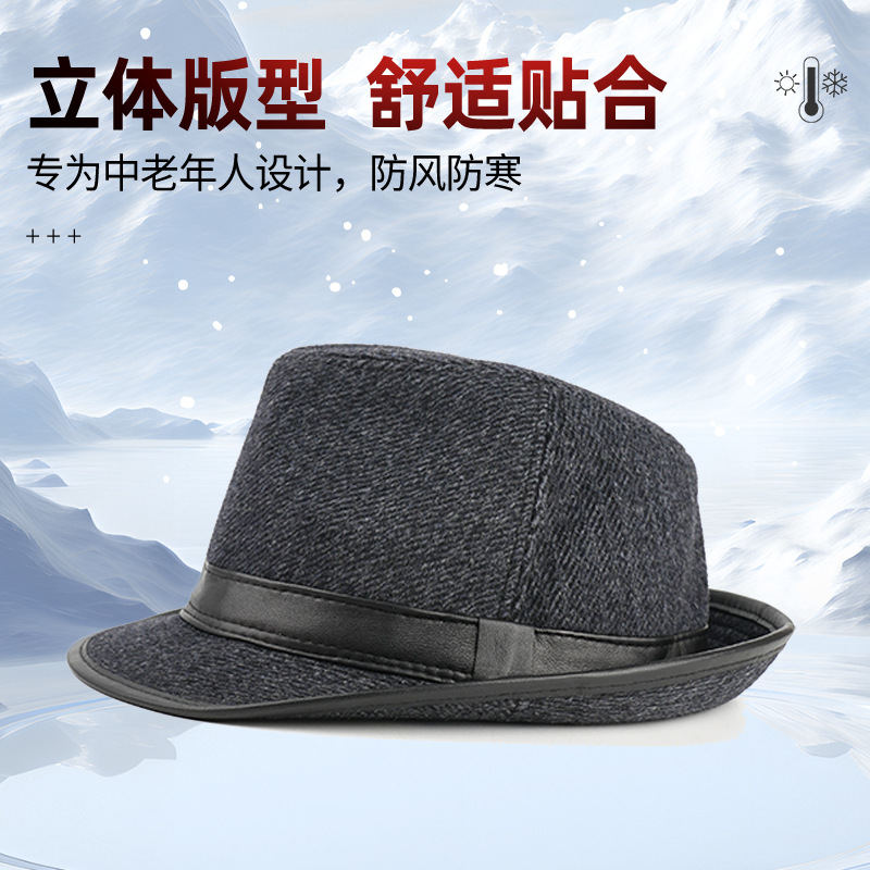 autumn winter hat men's brushed plaid satin top hat fedora hat middle-aged and elderly men's hat winter cotton-padded cap grandpa hat 中文版