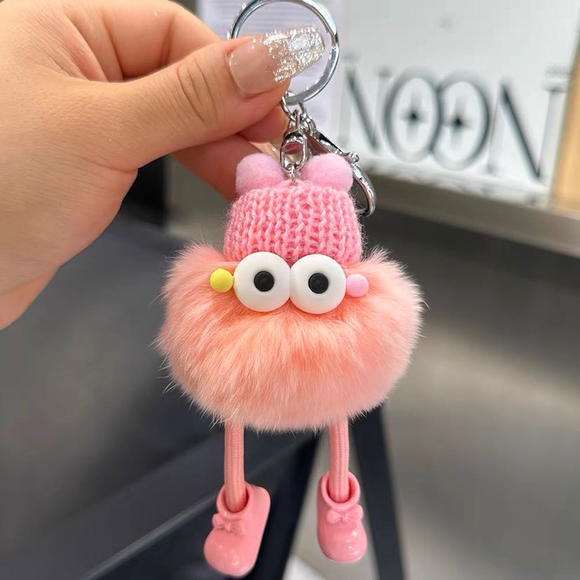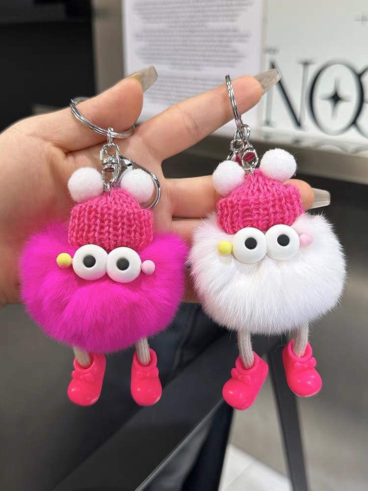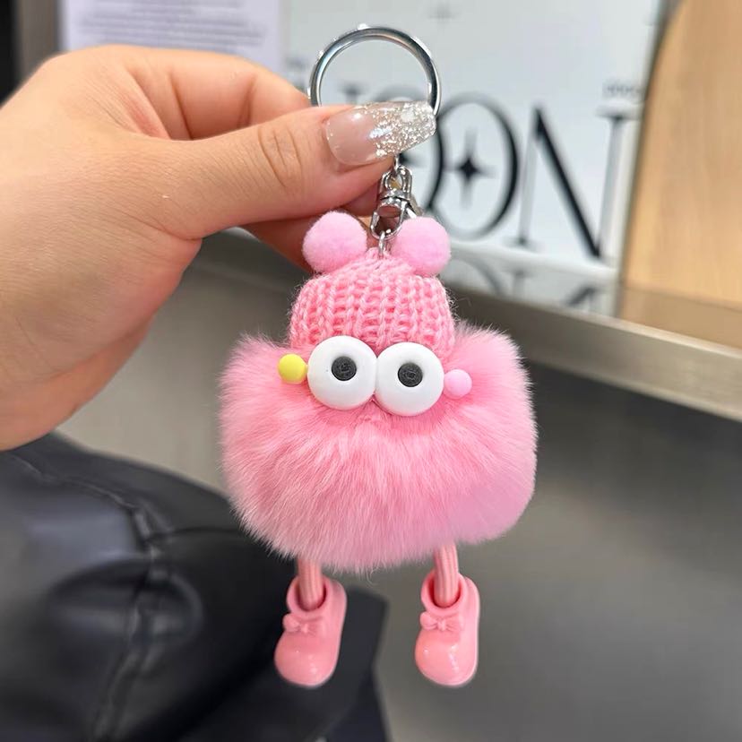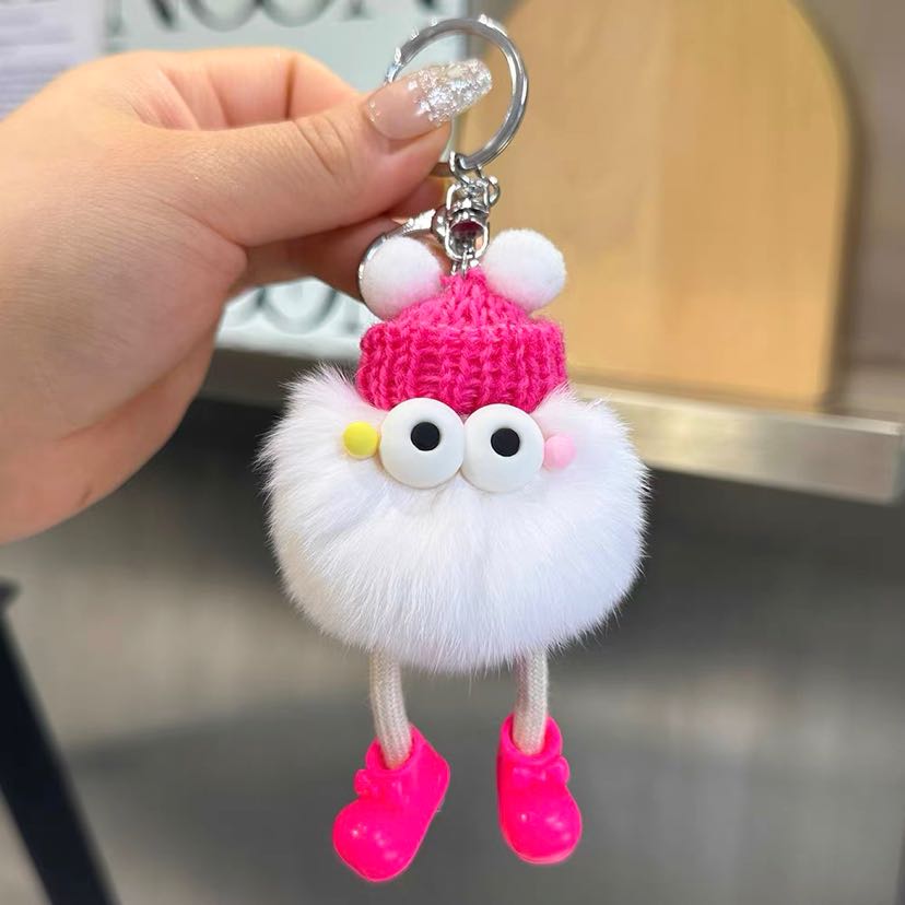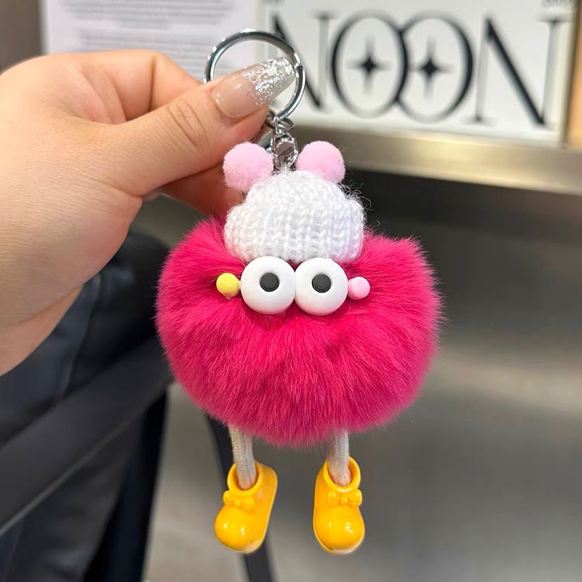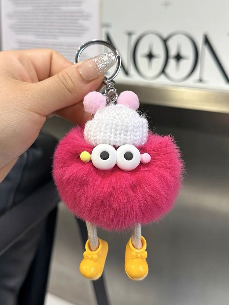 cute rex rabbit fur small briquette handbag pendant fur ball ugly things doll ornaments cartoon doll car key