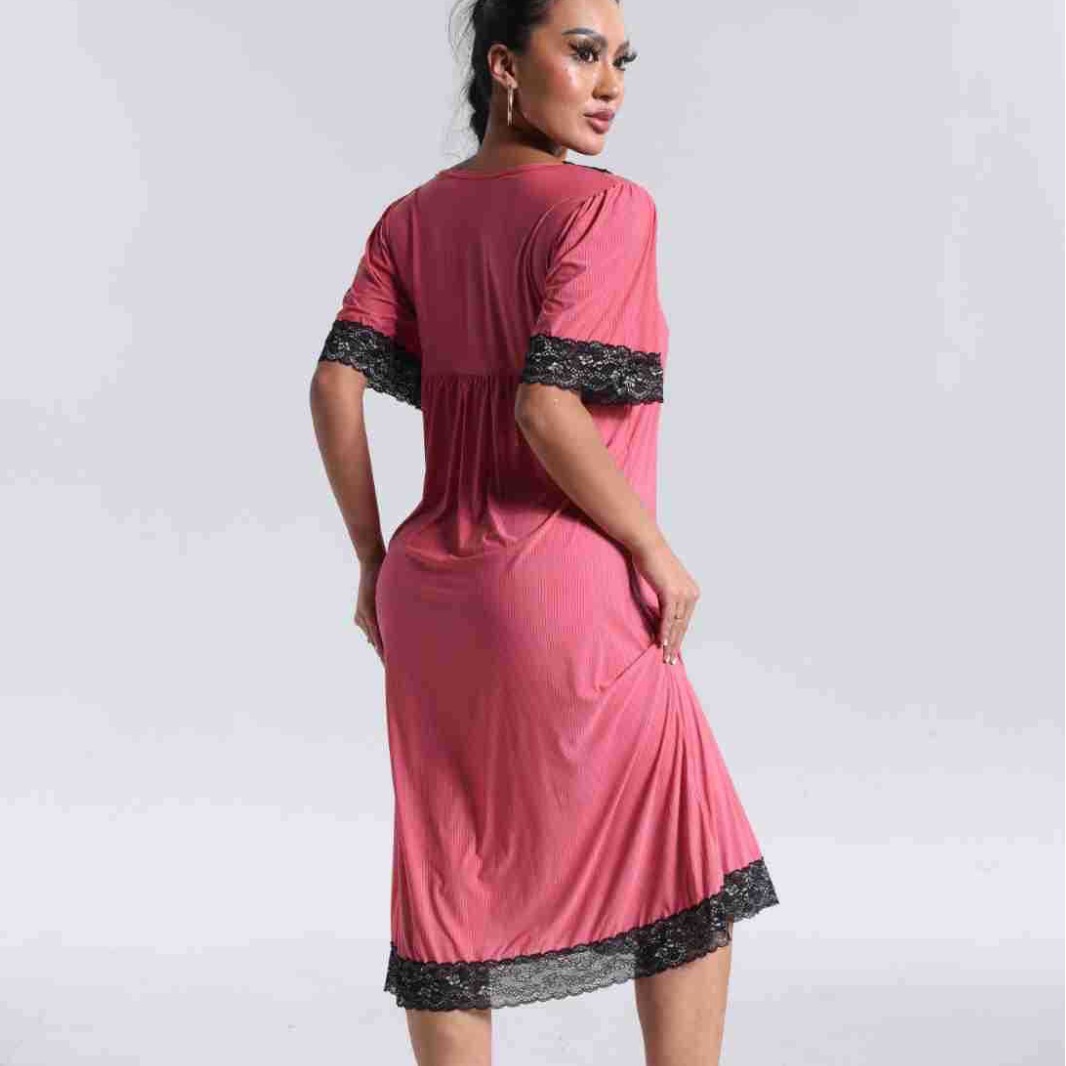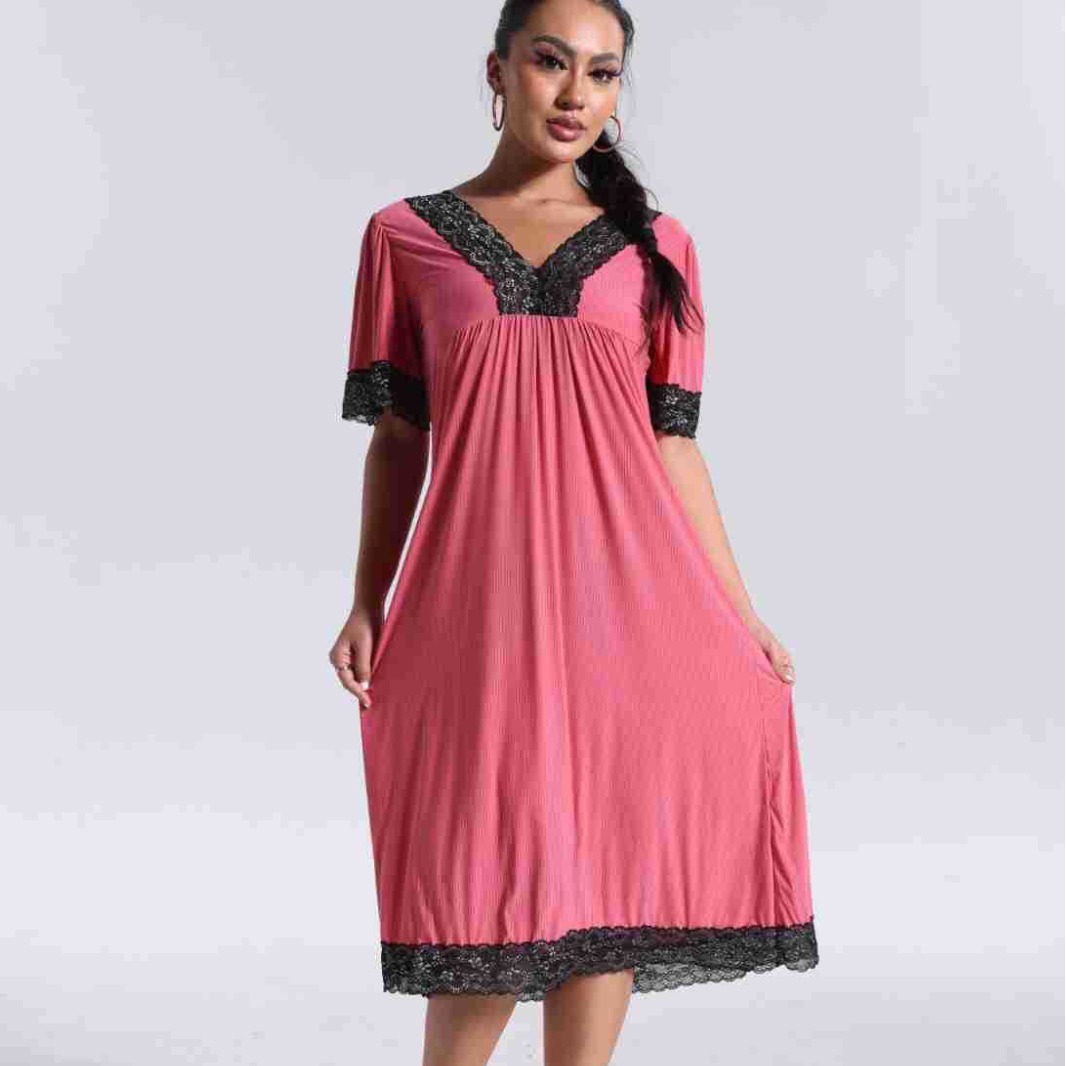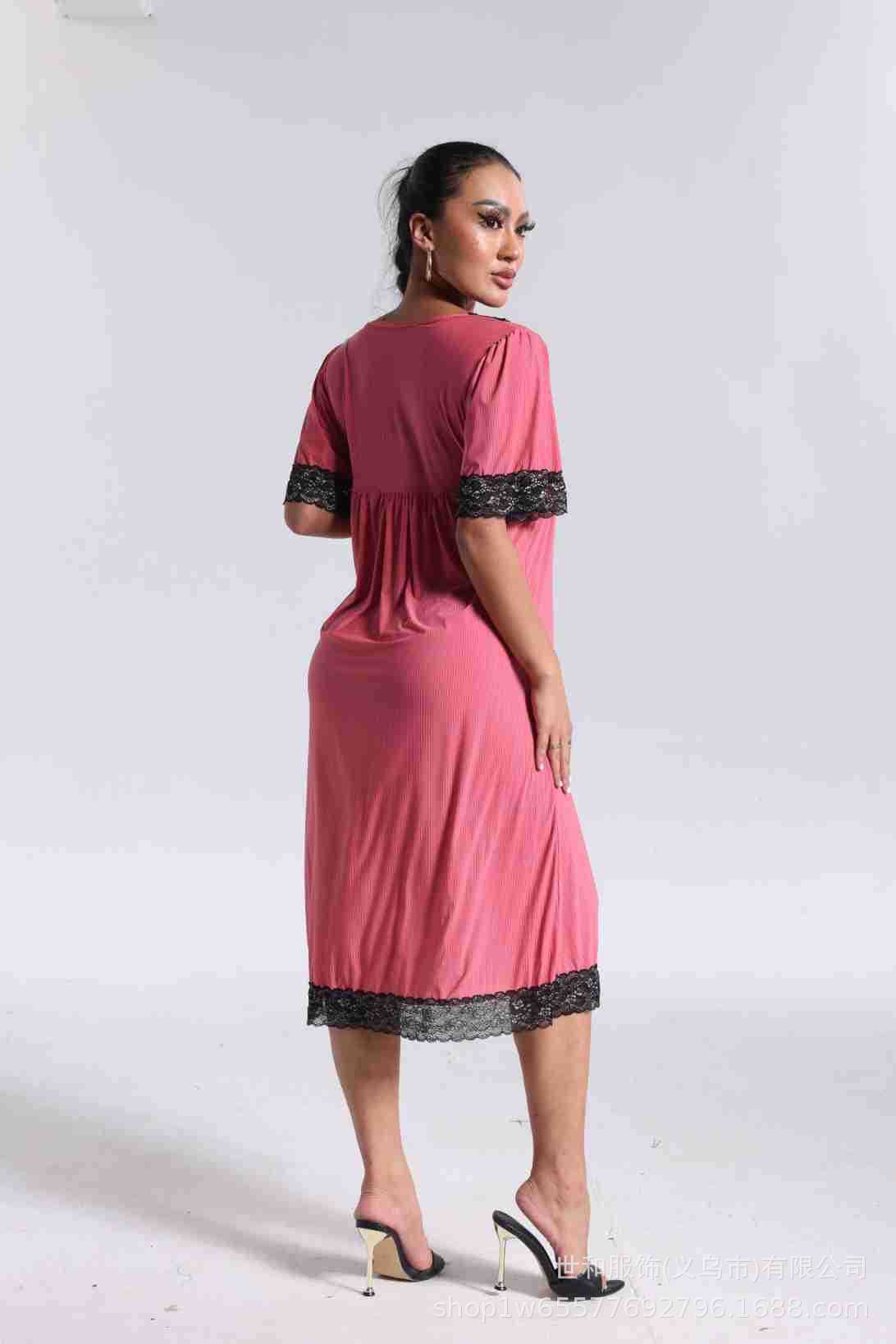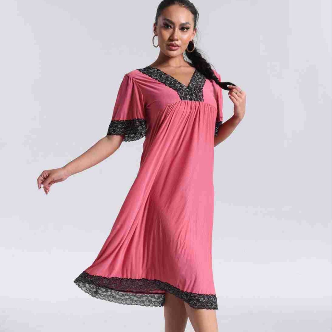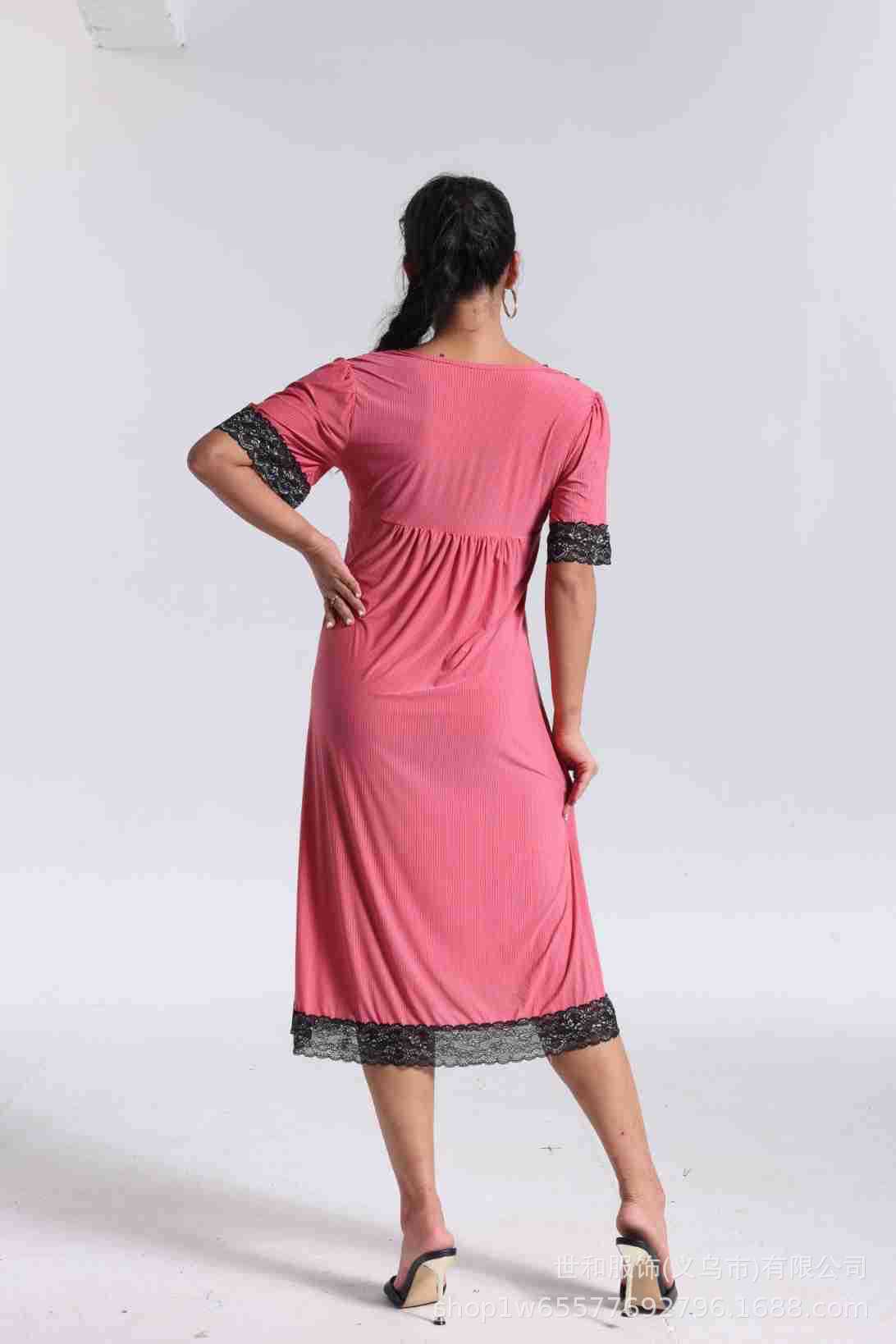 spring and summer new women's pajamas foreign trade women's large size modal stretch long lace nightdress 中文版